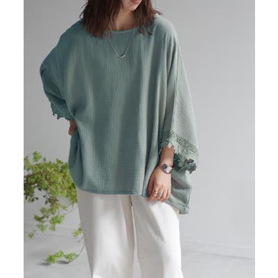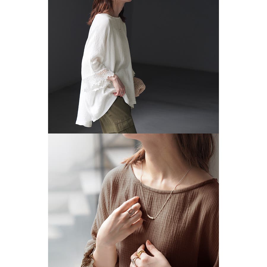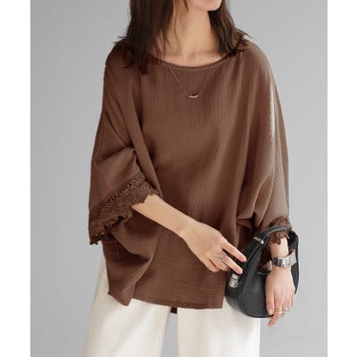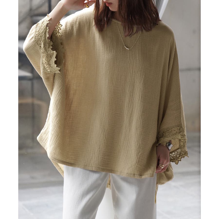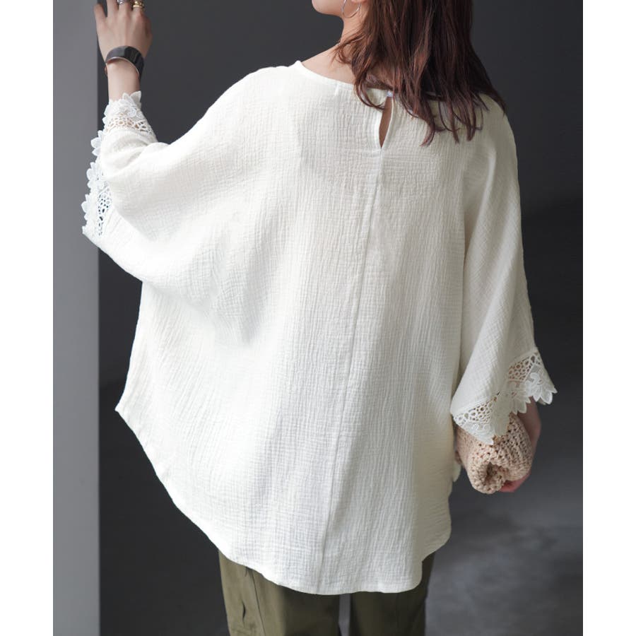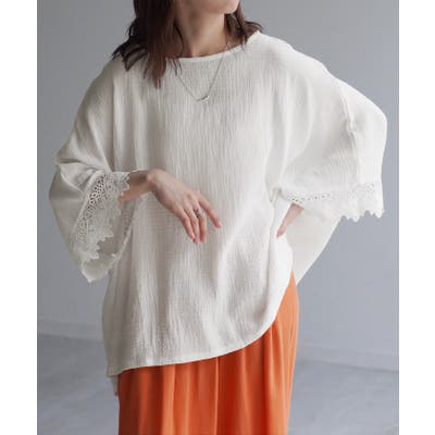 さりげない肌見せが大人可愛い、甘すぎず上品な袖レースのブラウスです。