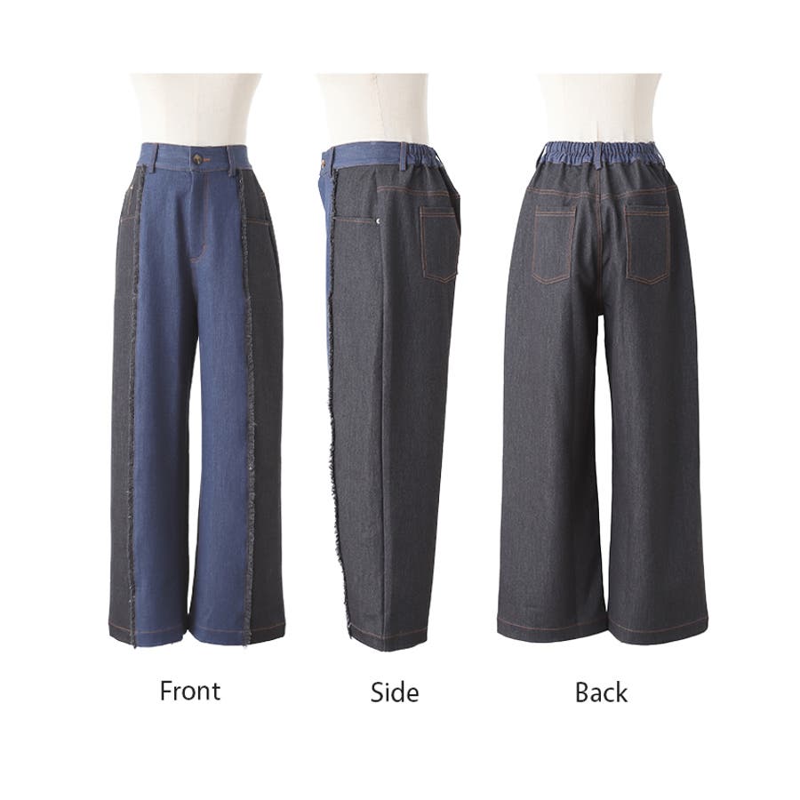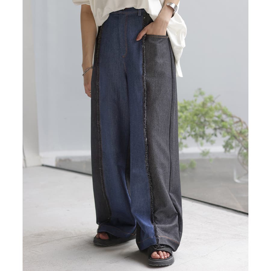 切り替えを入れ配色にしたデザインデニムパンツです。