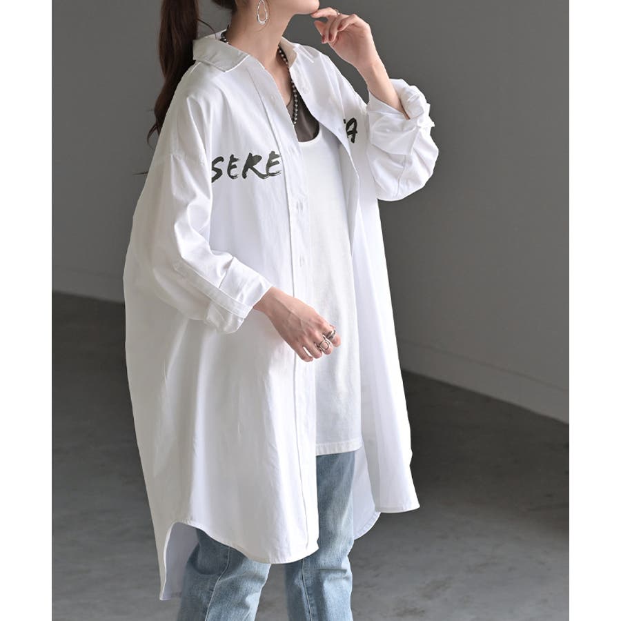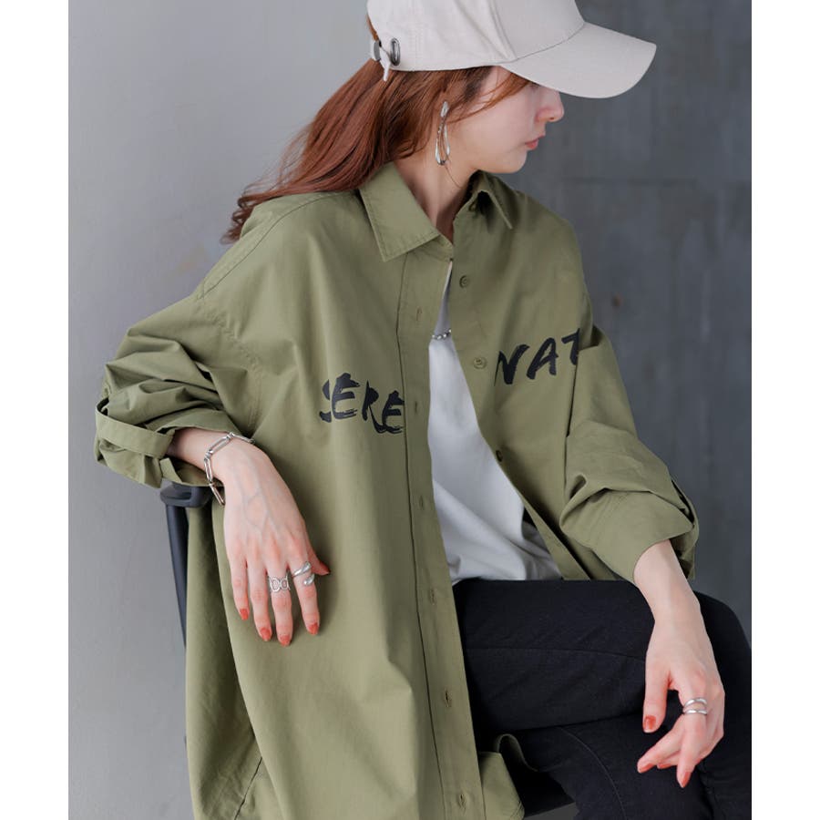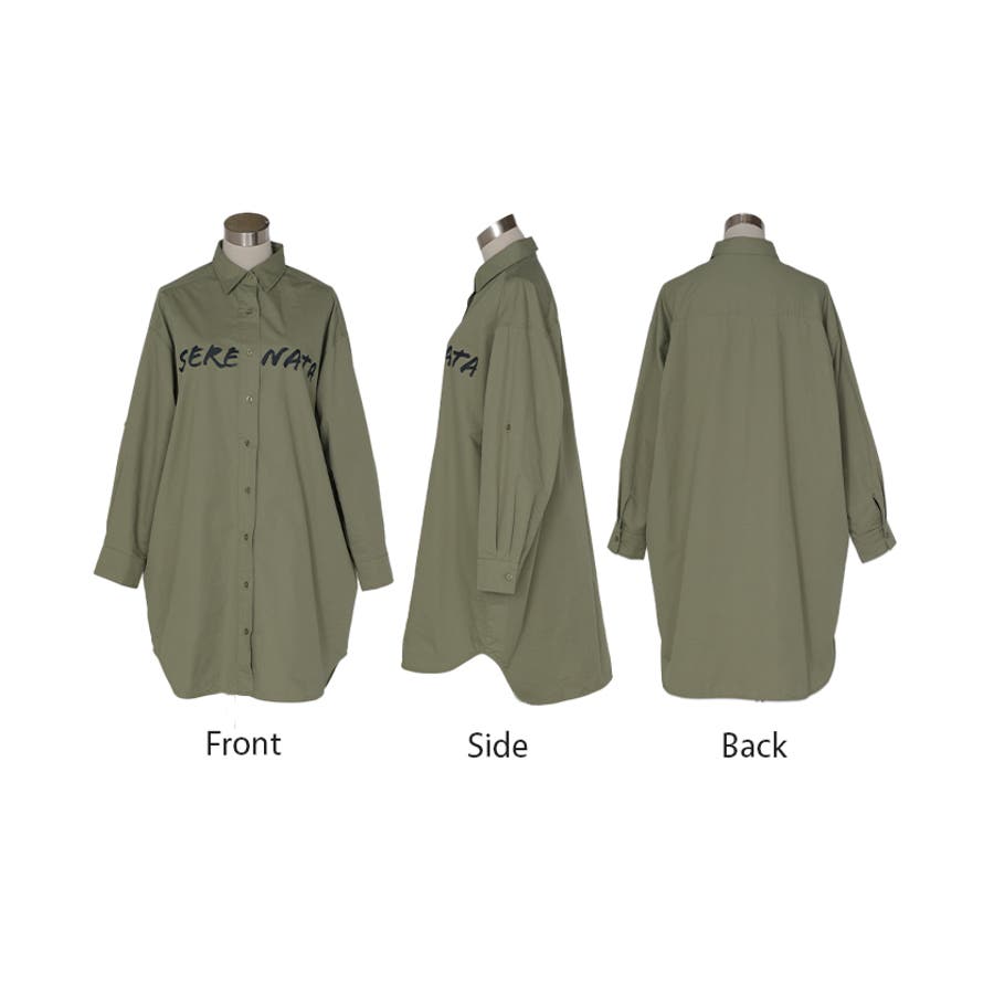 フロントの英字プリントがアクセントになったシャツチュニックです。