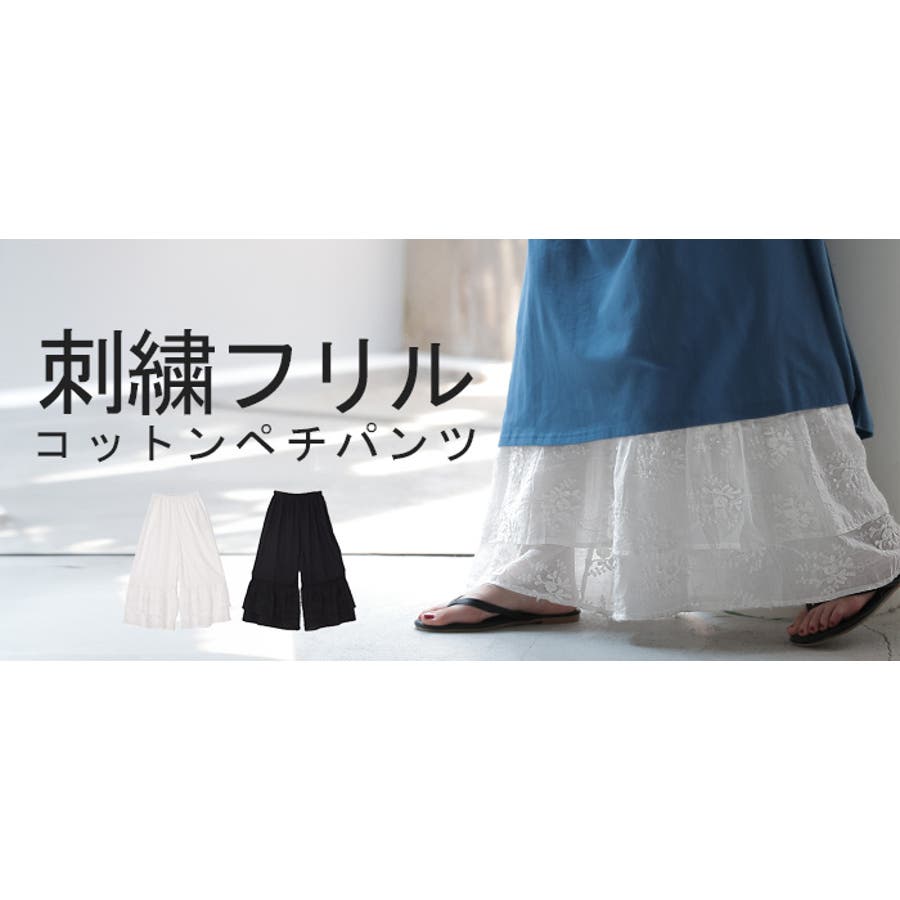 いつものコーデをもっとオシャレにする刺繍レースコットンペチパンツです。