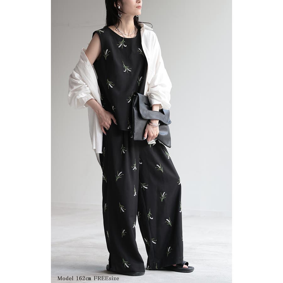 上下セット セットアップコーデ 2点セット しわになりにくい シワになりにくい アイロン不要 シンプル ワイドパンツ レディース ワイド パンツ フレアパンツ フレア 刺繍入りワイドパンツ 刺繍入りパンツ 刺繍パンツ ずぼん ボトムス ボトム 太め 太目 ボックスシルエット スリット スリット入り スリットパンツ サイドスリット ハイライズパンツ ハイウエストパンツ リラックスパンツ ボーイフレンド ガウチョ ガウチョパンツ 長ズボン 長ずぼん ずぼん ズボン ボタン ファスナー ジップ zip 小さいサイズ 美脚 脚長 脚長効果 スタイルアップ ロングパンツ ロング 太め小尻 小尻パンツ ゴムウエスト ゴムウェスト ウエストゴム ウェストゴム ゴム ウエスト ウェスト ポケット ラクチン らくちん 楽ちん 楽 動きやすい 優秀パンツ 毎日パンツ ほどゆるパンツ ゆったりサイズ すっきり タックワイドパンツ レースパンツ フラワー 花 花柄 柄 大柄 アート柄 アート ニュアンス柄 ニュアンス?ボタニカル柄 ボタニカル リーフ リーフ柄 トール丈 トール トールサイズ 高身長 170cm 長い 長め 花刺繍 花柄刺繍 フラワー刺繍 刺繍タンクトップ 刺繍タスク キャミ ノースリ 小花 小花柄 花柄タンクトップ 花柄タンク フラワータンクトップ フラワーキャミソール フラワーキャミ 花柄キャミソール 花柄キャミ ロングタンクトップ ロングタンク ロング丈 ロング丈タンクトップ ロング丈タンク レイヤードタンクトップ 裾 ラウンド キャミソール 肌着 下着 ベーシックインナー 付け裾 透けにくい しっかり 厚手 厚い 厚め レイヤードキャミ 袖なし U字ネック Uネック 丸首 ミディアム ミドル スタイリッシュ モード フェミニン ガーリー レイヤード 重ね着 重ね レイヤードコーデ ブラック 黒 黒色 フリーサイズ M L XL XXL 2L 3L 体型カバー 二の腕カバー 二の腕隠し 着痩せ 大きい 大きめ 大き目 プラスサイズ カジュアル ナチュラル ベーシック オフィス オフィスカジュアル テレワーク リモートワーク リモート オンライン飲み会 韓国ファッション 韓国風 韓国 ストリート おうち時間 お家時間 デート 女子会 お出かけ フェス リゾート ビーチ 海 旅行 飛行機 パーティー パーティ 着回し 母の日 プレゼント ギフト 贈り物 クリスマス シンプル 大人 オトナ 大人カジュアル レディースファッション 女性 綺麗 綺麗目 きれい キレイ キレイめ キレイメ きれいめ 高見え 上質 上品 ゆる ゆったり 旬 トレンド 20代 30代 40代 50代 60代 おしゃれ お洒落 オシャレ 可愛い かわいい カワイイ カッコいい 格好良い カッコイイ 春 夏 秋 冬 春夏 秋冬 HUG.U HUGU ハグユー はぐゆー