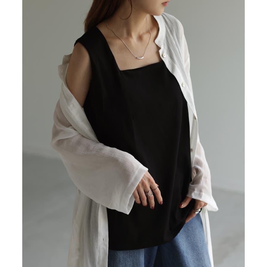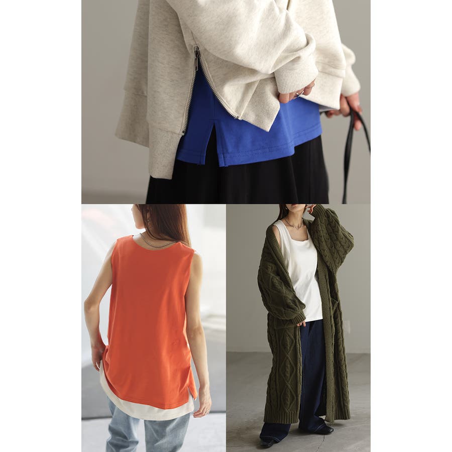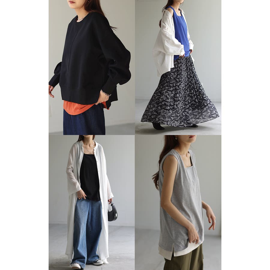 シャツやシアートップスなどとのレイヤードコーデにぴったりなシンプルデザイン。
