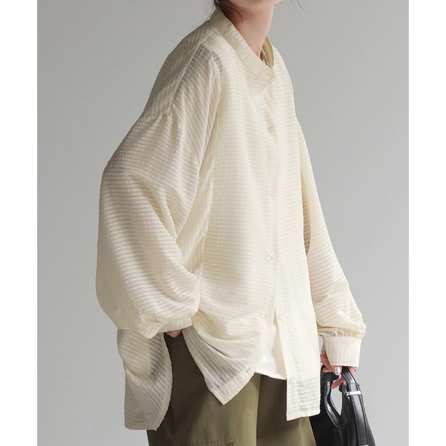 スタイリングに取り入れやすいシアーストライプシャツです。