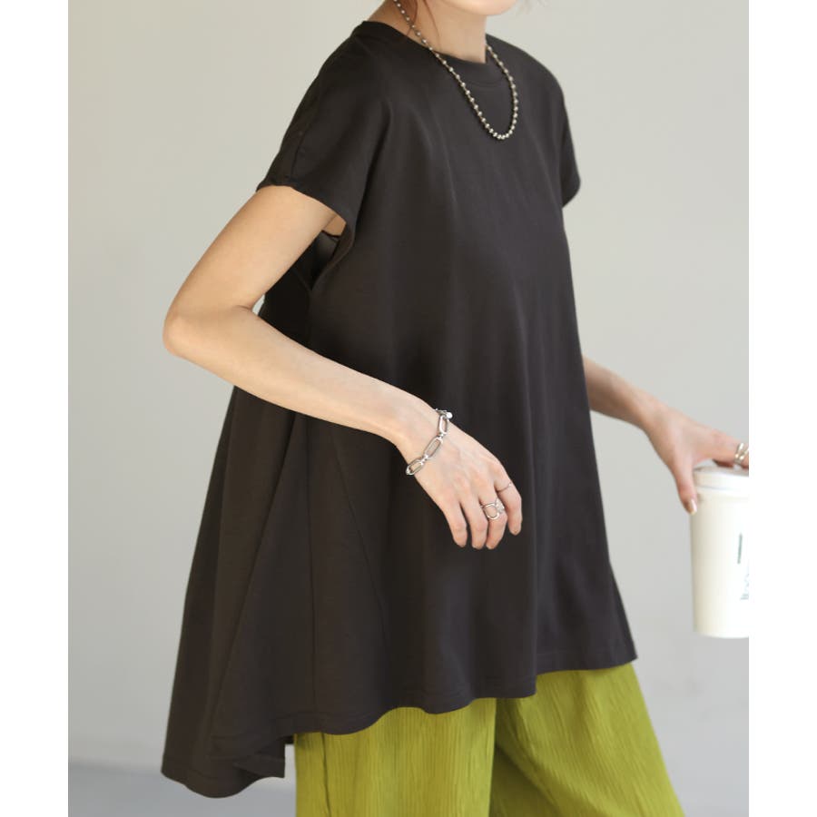 動くたびにひらっと揺れる裾で、こなれ感もアップする1枚です。