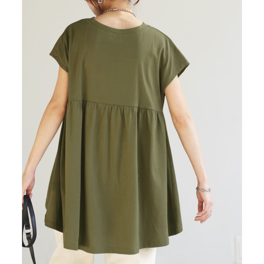 ゆったりめのシルエットとフレンチスリーブで体型も二の腕もカバー。