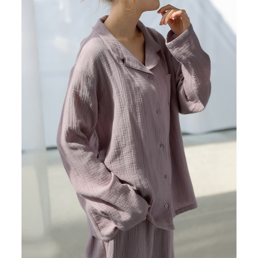 空気を含んでふんわり軽い綿100%ダブルガーゼ素材のパジャマです。