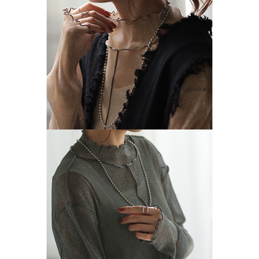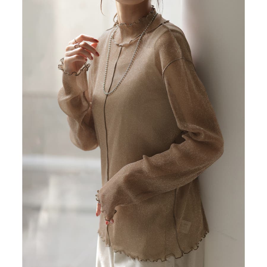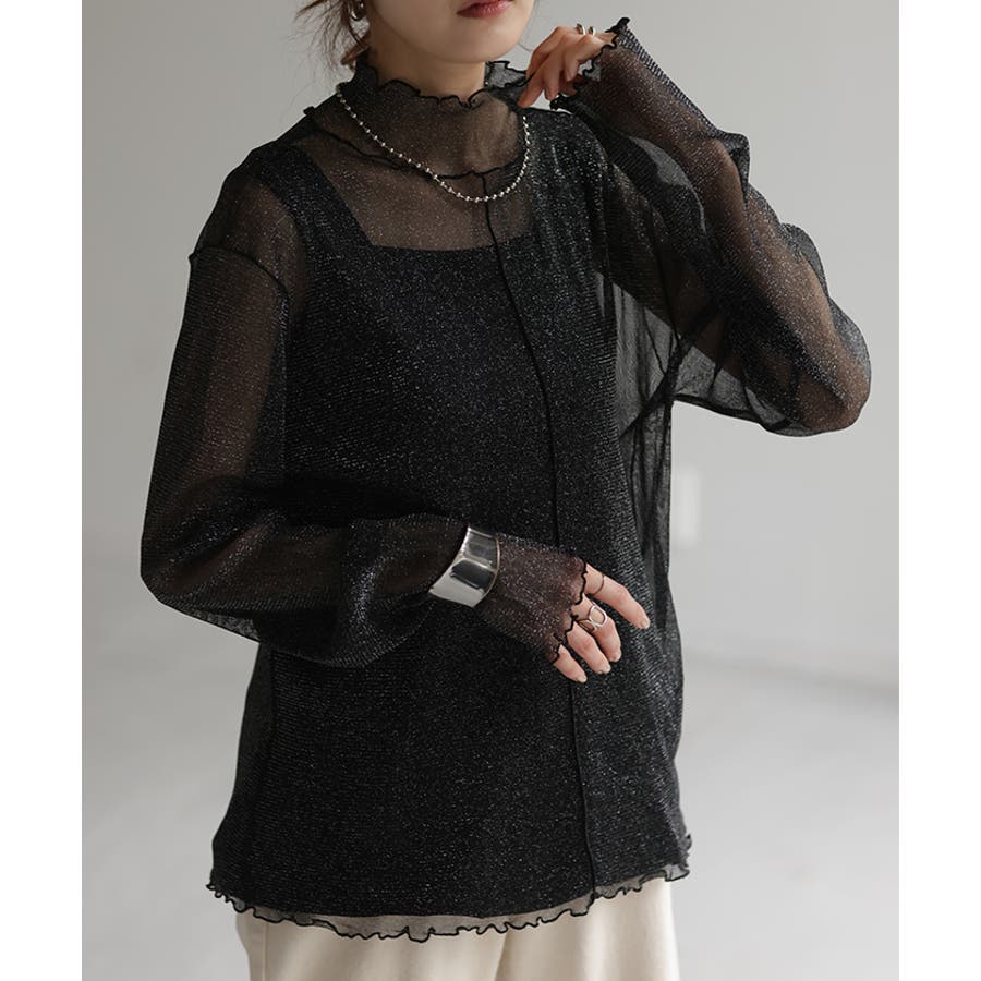 トレンド感のあるラメ素材が可愛いシアートップスです。