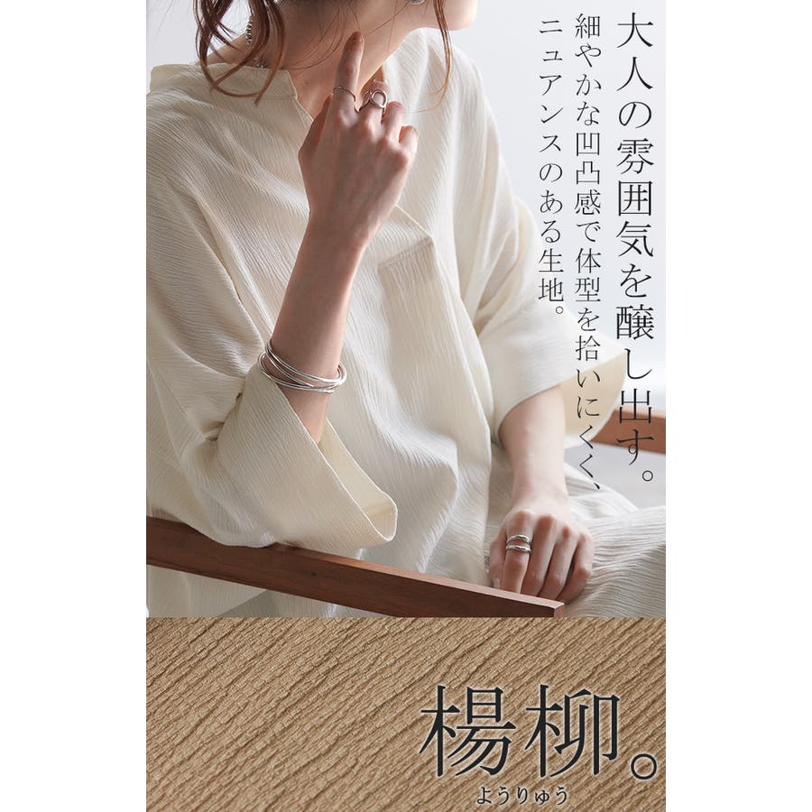 リラックス感を楽しむ自然な透け感が魅力の楊柳素材ブラウスです。