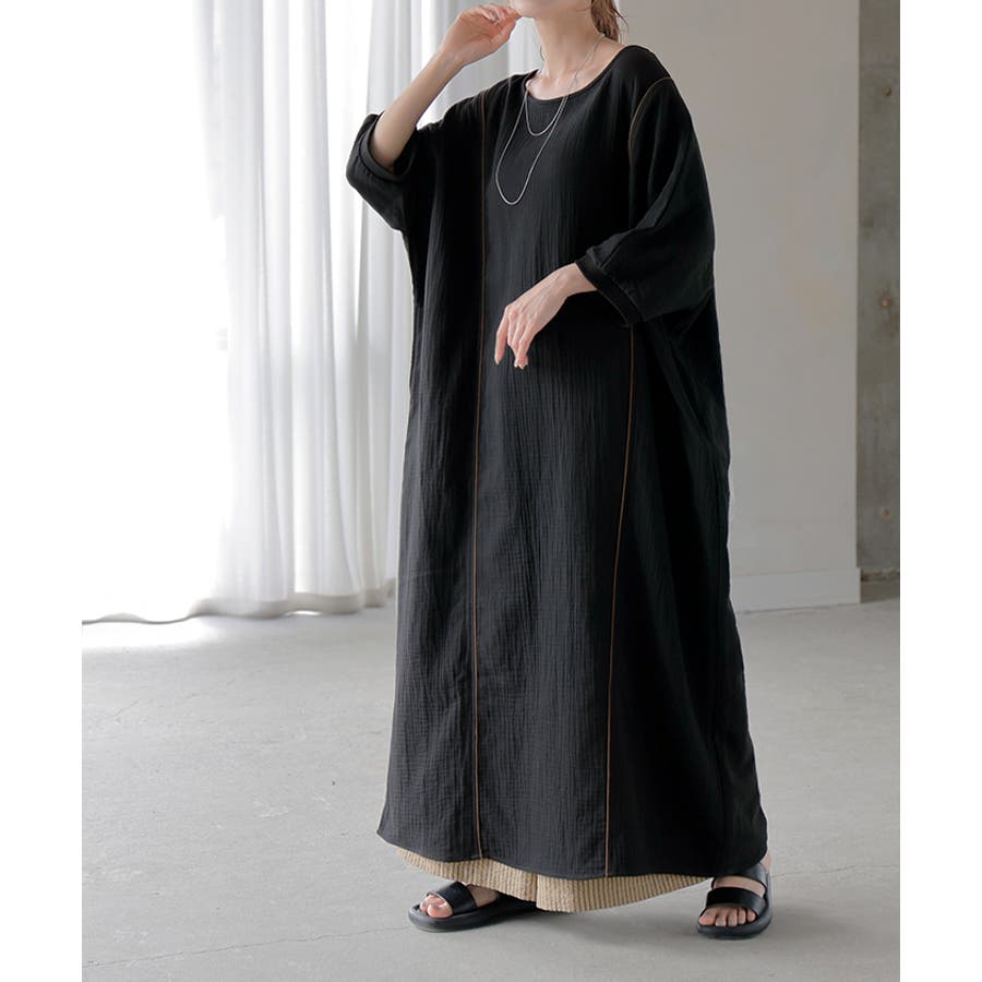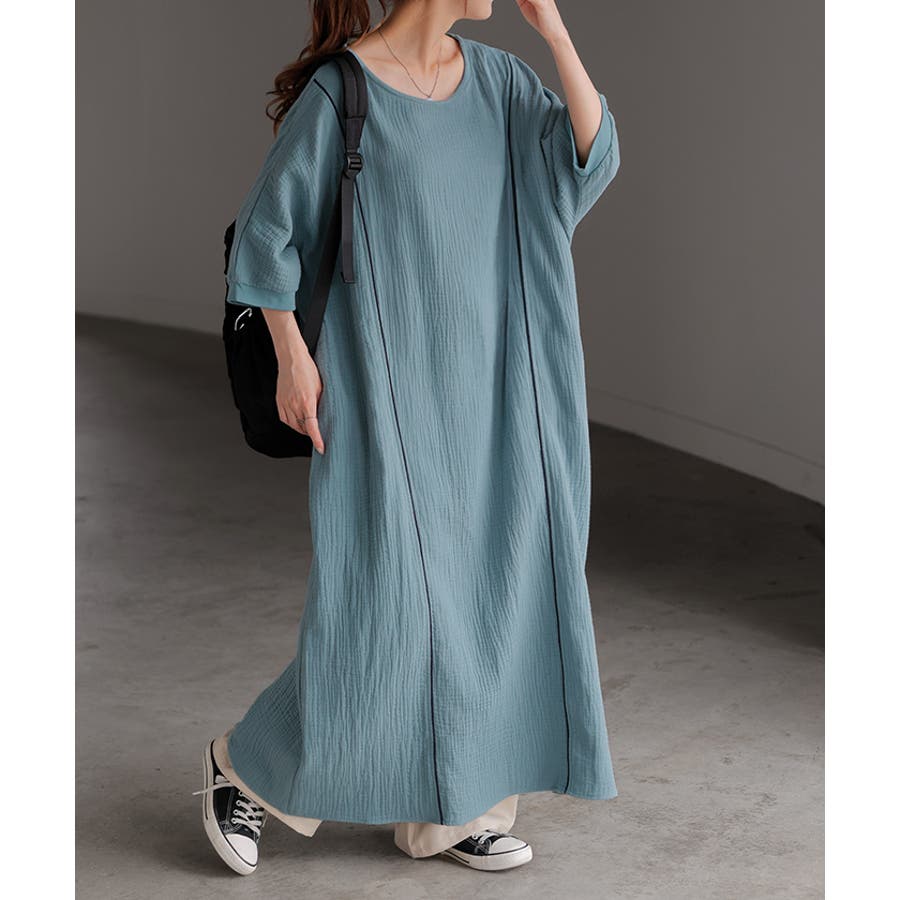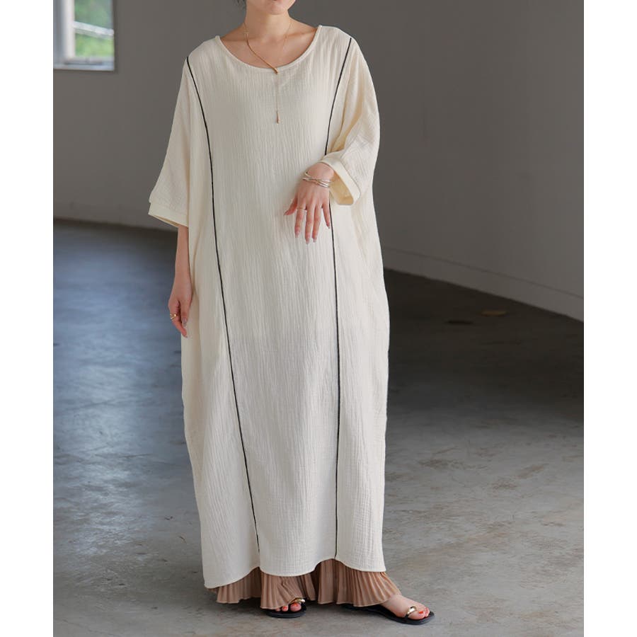 シンプルでベーシックなAラインシルエットのガーゼワンピースです。