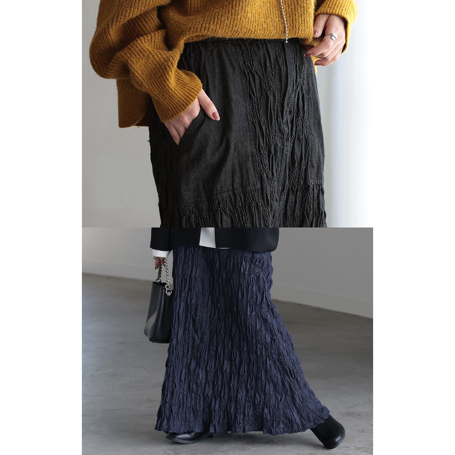 独特なシワ感は下半身が気になる方にも腰から下をすっきりした印象に◎。