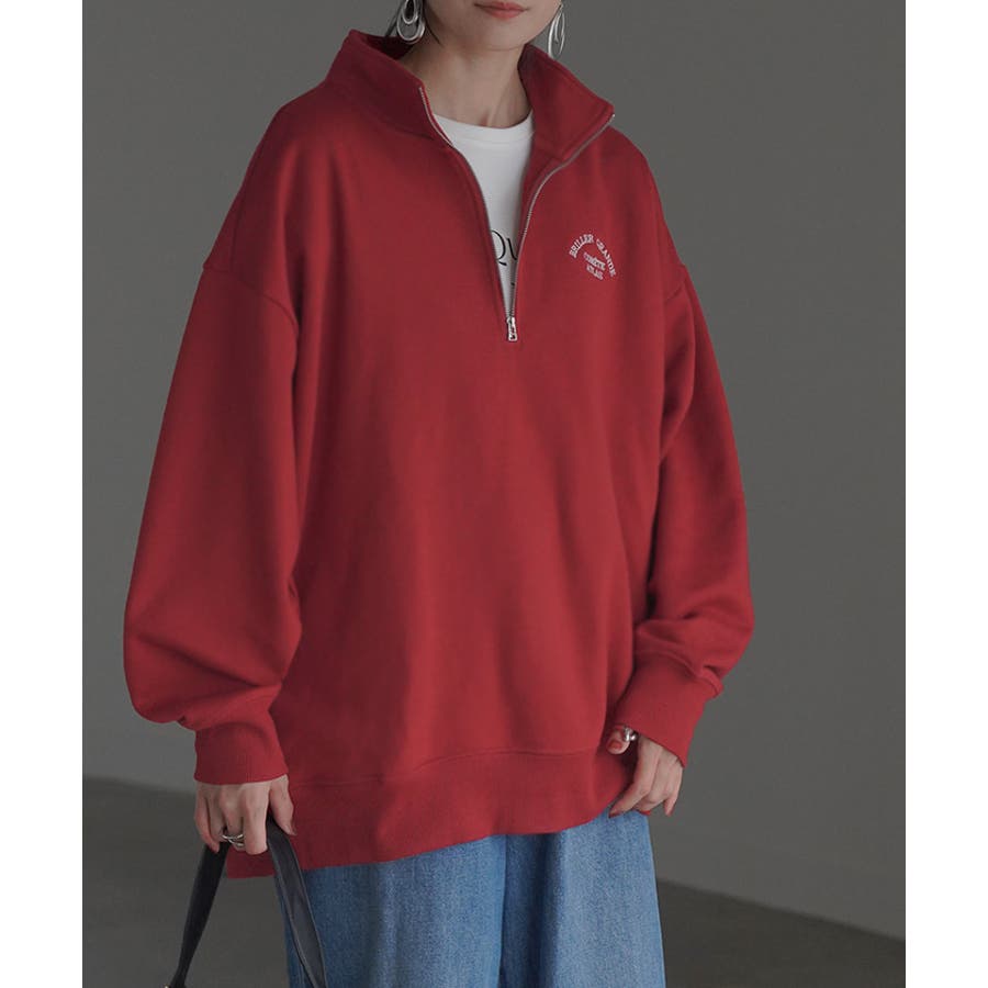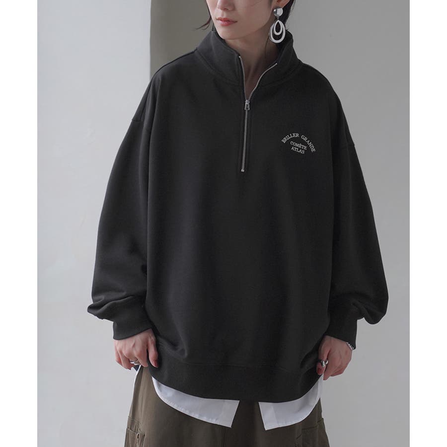 ロゴ刺繍がキャッチーなスウェットハーフジッププルオーバーです。