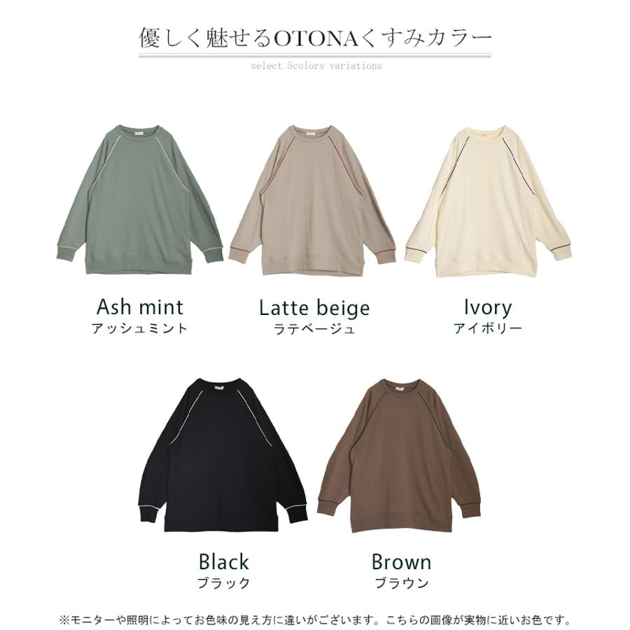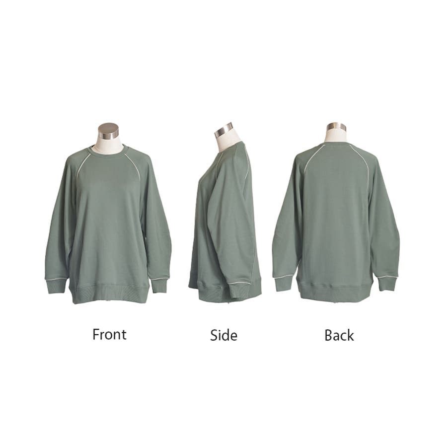 ラグランスリーブ切替部分に配色パイピングを施しデザインのポイントに。