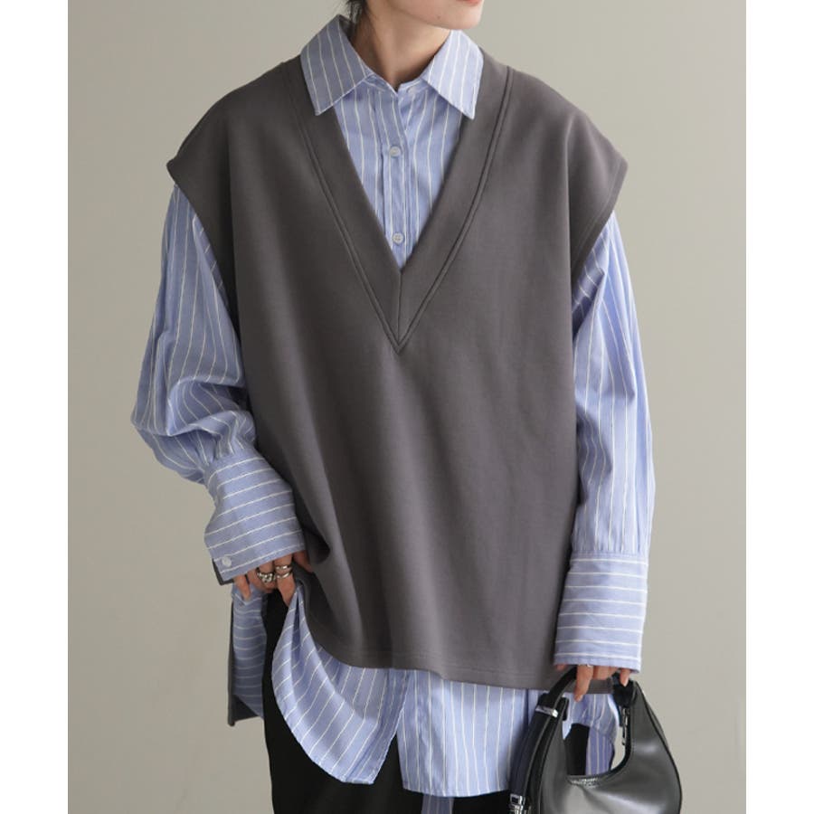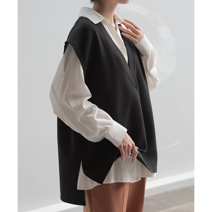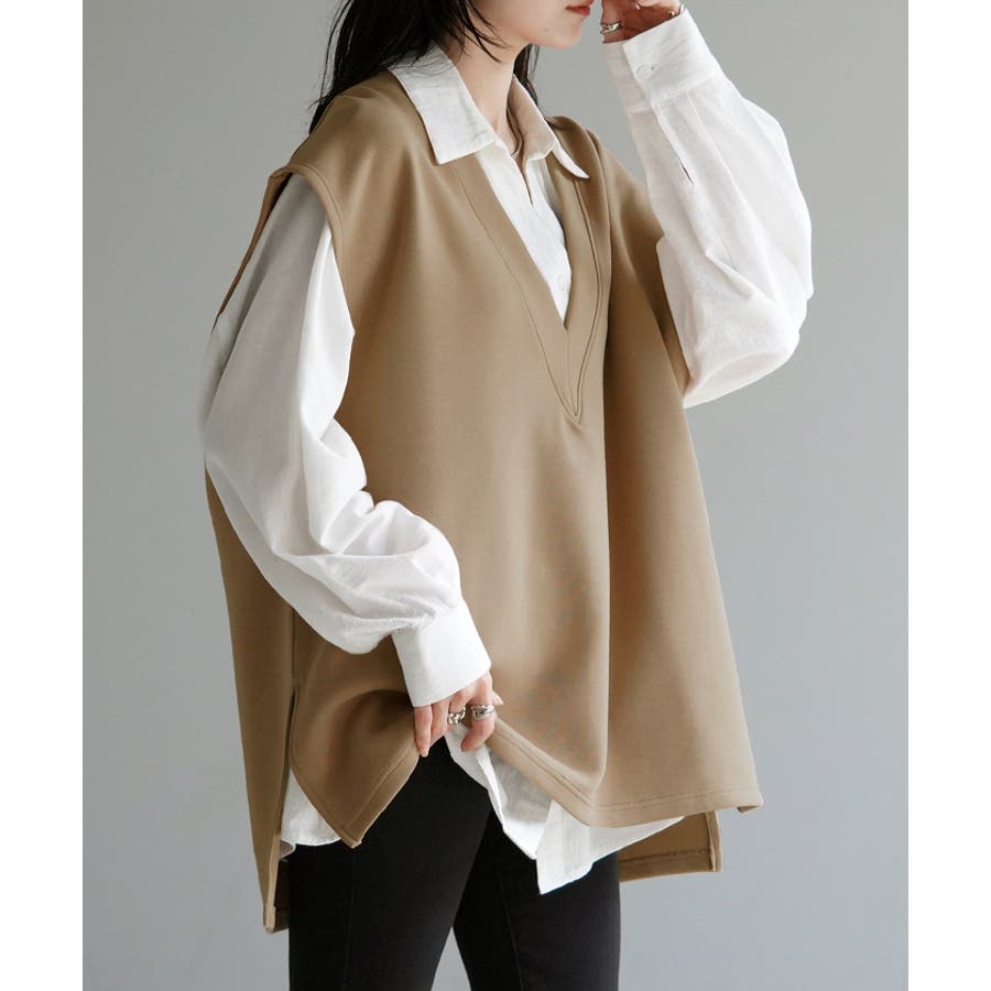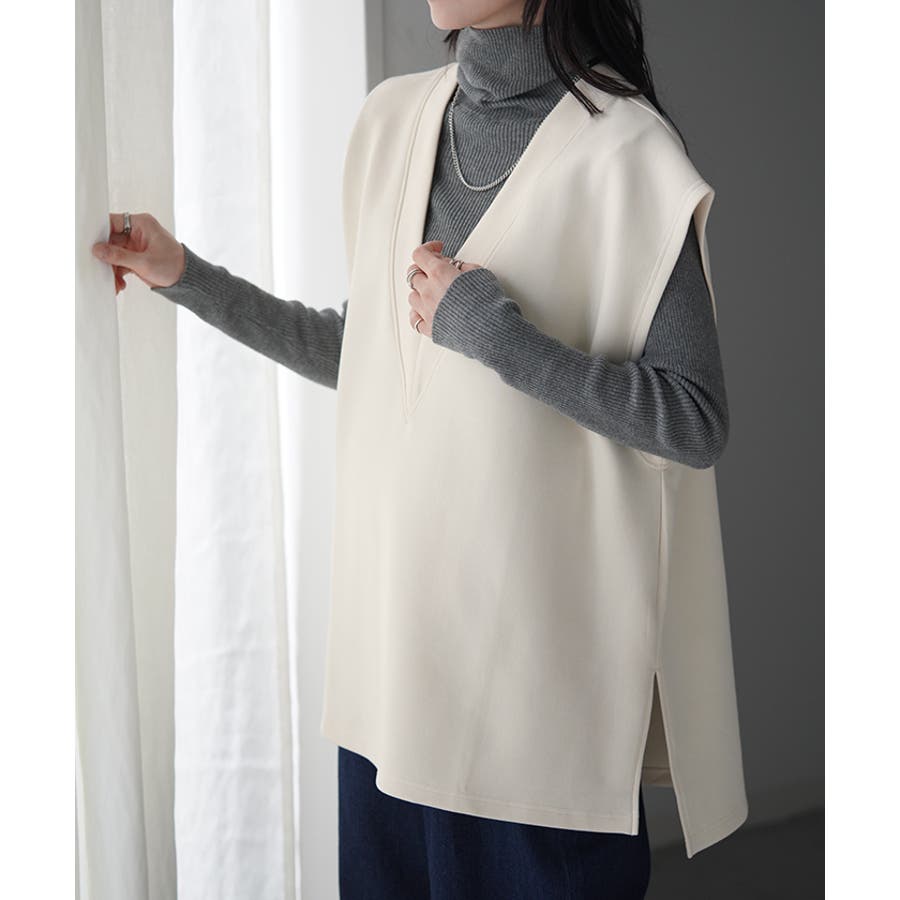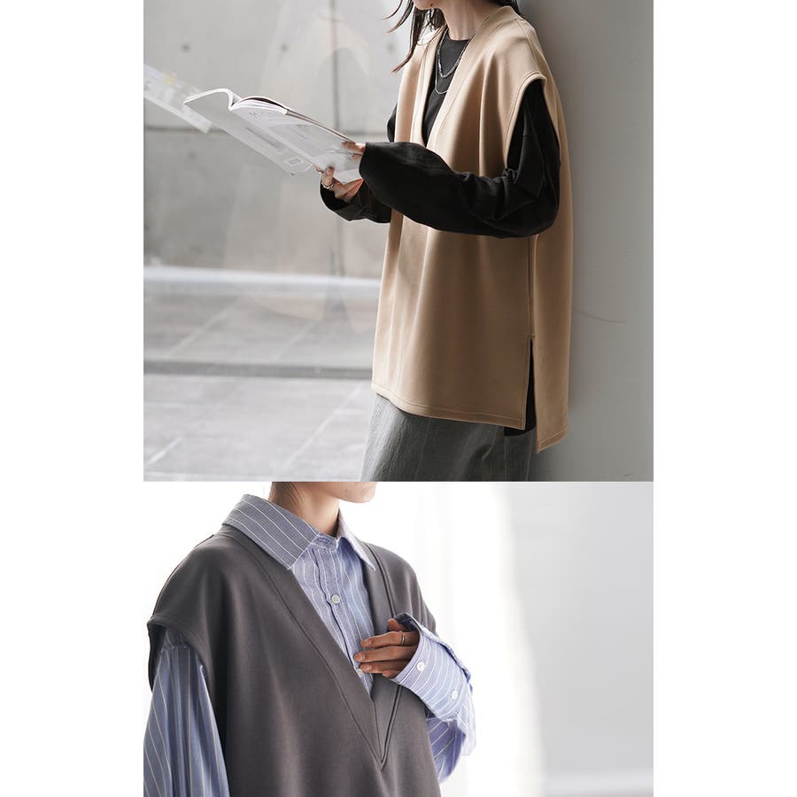 普段のコーディネートにプラスするだけで大人コーデが叶うプルオーバーベストです。