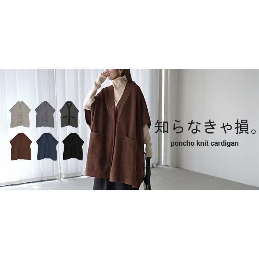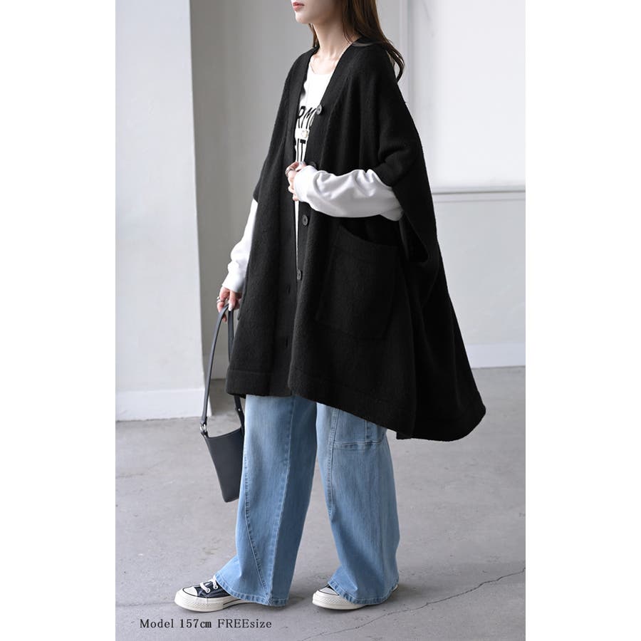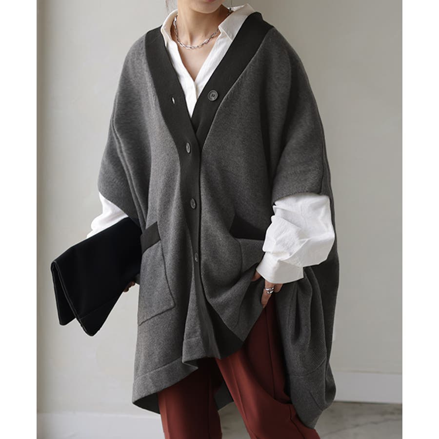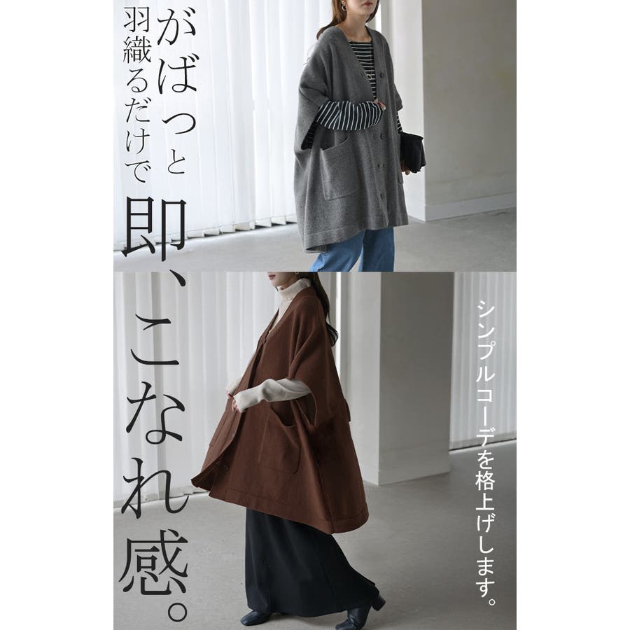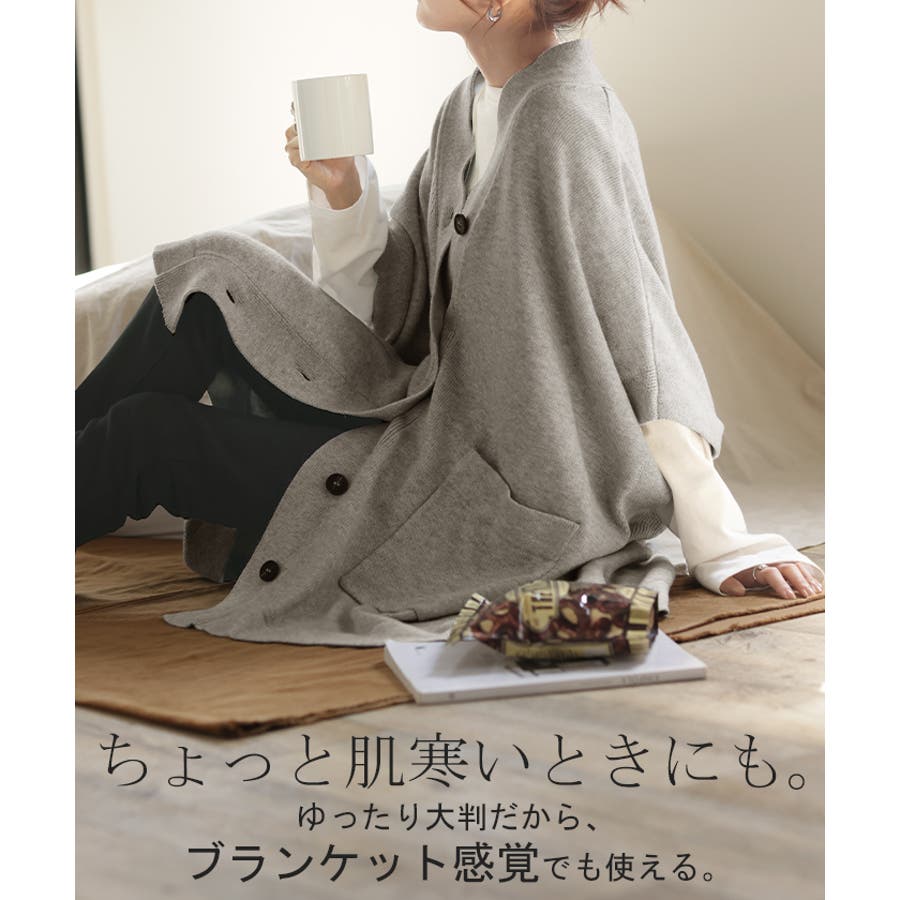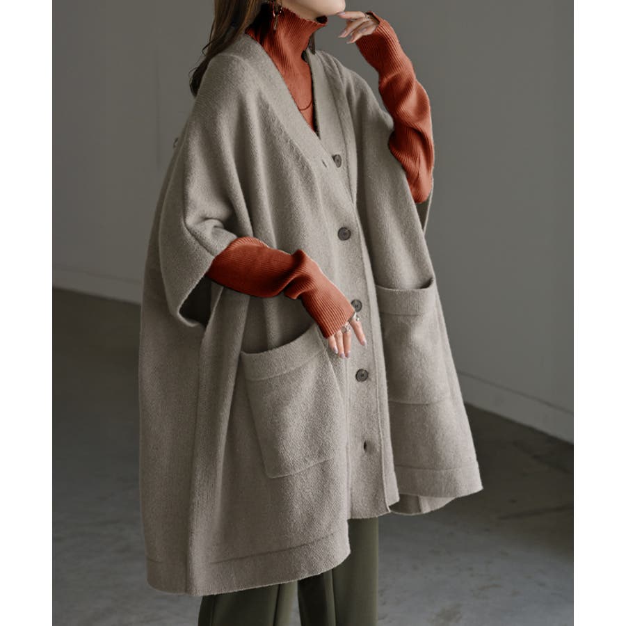 ゆったりとしたサイズ感のポンチョ風ニットカーディガンです。