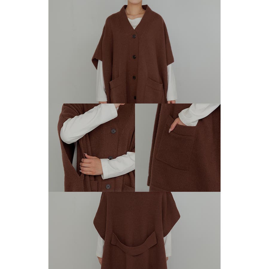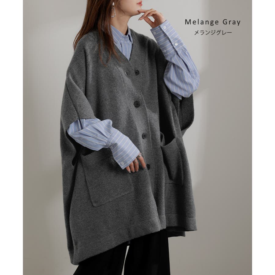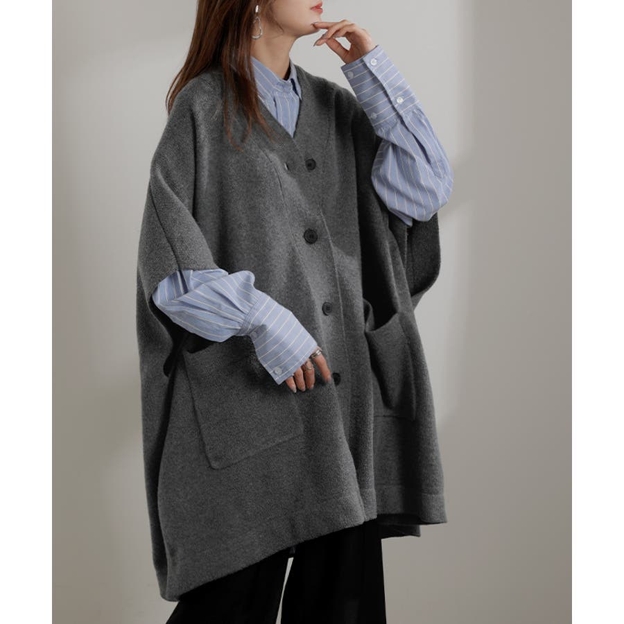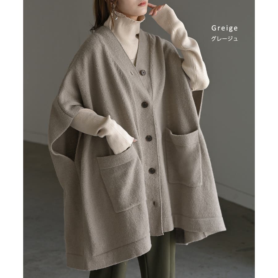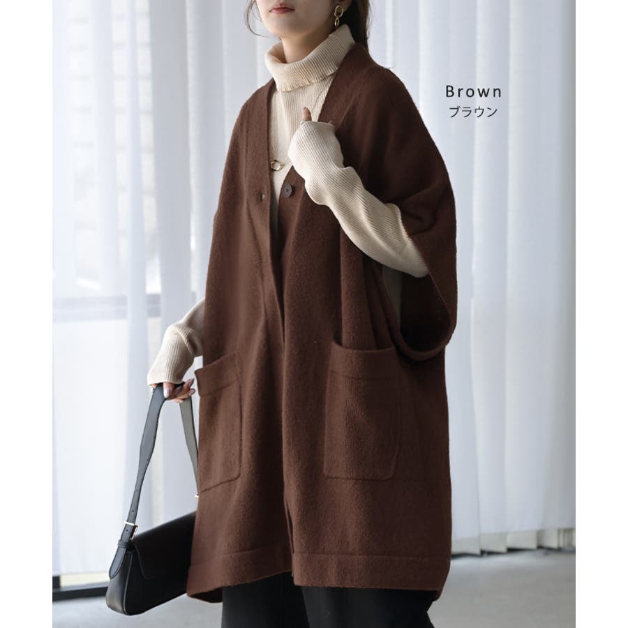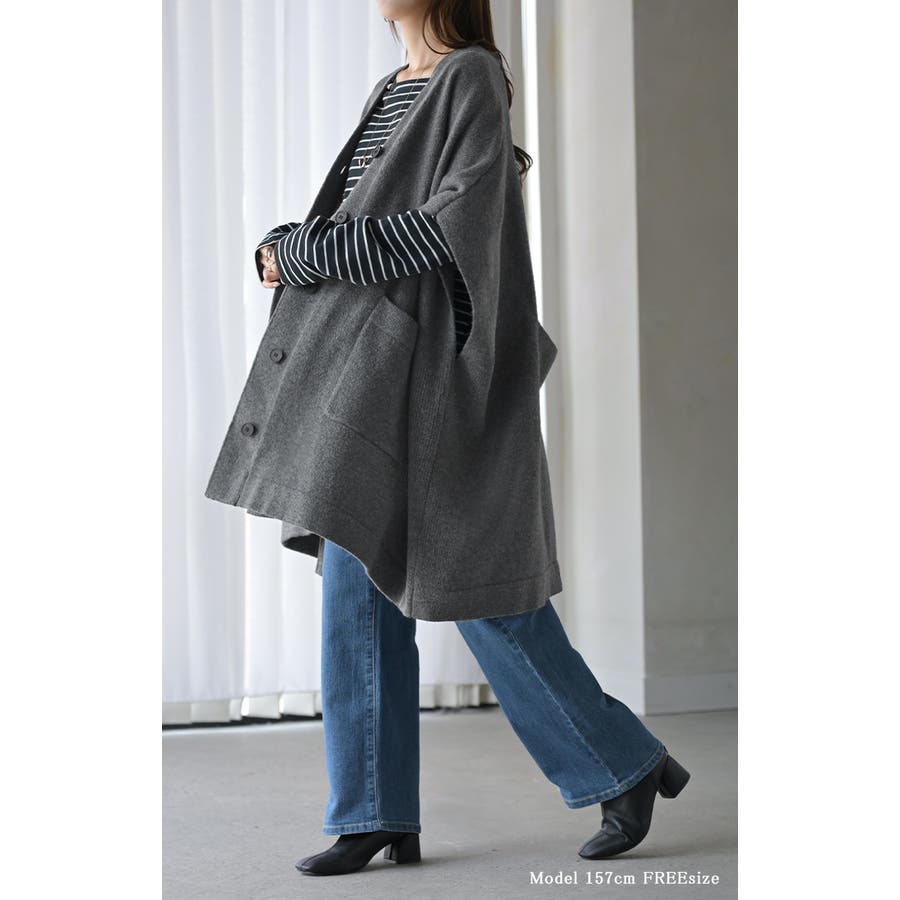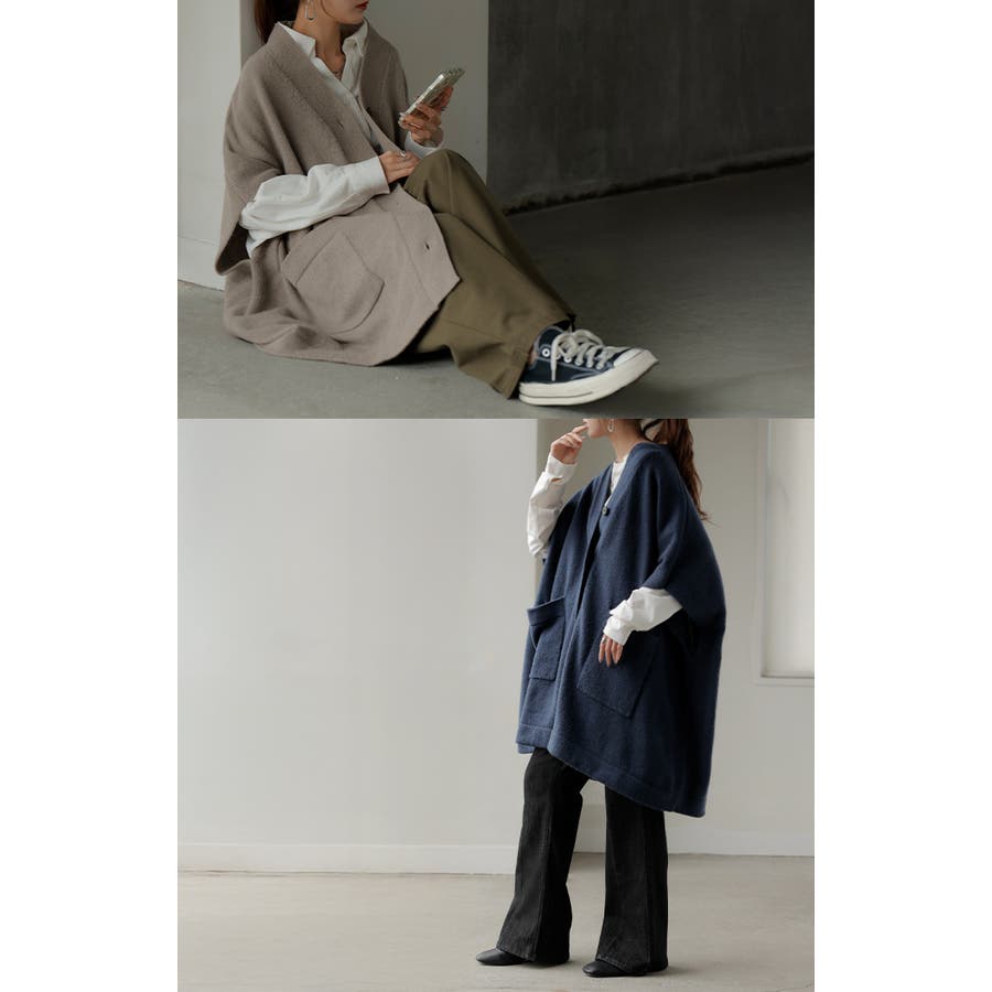 ゆったりとしたサイズ感のポンチョ風ニットカーディガンです。