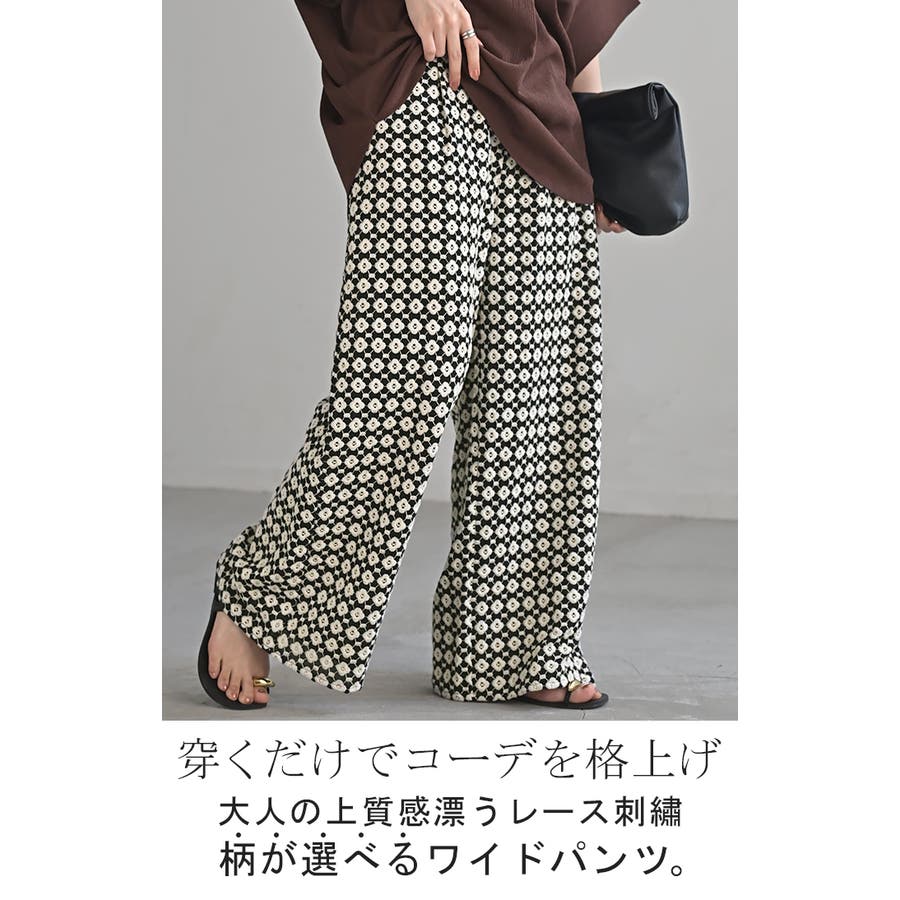 ワイドパンツ レディース ワイド パンツ フレアパンツ フレア ズボン 刺繍入りワイドパンツ 刺繍入りパンツ 刺繍パンツ ずぼん ボトムス ボトム 太め 太目 ボックスシルエット ハイライズパンツ ハイウエストパンツ リラックスパンツ ボーイフレンド ガウチョ ガウチョパンツ 長ズボン 長ずぼん ずぼん ズボン ボタン ファスナー ジップ zip 大きいサイズ対応 プラスサイズ 大きい 大きめ 小さいサイズ 美脚 脚長 脚長効果 スタイルアップ ロングパンツ ロング 太め Vステッチ 小尻 小尻パンツ ゴムウエスト ゴムウェスト ウエストゴム ウェストゴム ゴム ウエスト ウェスト ポケット ラクチン らくちん 楽ちん 楽 動きやすい ストリート 着回し 優秀パンツ 毎日パンツ ほどゆるパンツ ゆったりサイズ ゆる すっきり タックワイドパンツ レースパンツ 幾何学 幾何学模様 アート柄 アート ニュアンス柄 ニュアンス ブラック 黒 黒色 フリーサイズ フリー S M L LL 2L XL 3L XXL LLL 体型カバー 二の腕カバー 二の腕隠し 着痩せ 着回し お尻が隠れる 大きい 大き目 プラスサイズ カジュアル ナチュラル 大人カジュアル レディースファッション ベーシック オフィス オフィスカジュアル テレワーク リモートワーク リモート オンライン飲み会 韓国ファッション 韓国風 韓国 ストリート おうち時間 お家時間 デート お出かけ フェス リゾート ビーチ 海 旅行 飛行機 パーティー パーティ 着回し 母の日 プレゼント ギフト 贈り物 クリスマス シンプル 大人 オトナ 大人カジュアル オフィスカジュアル オフィス レディースファッション 女性 綺麗 綺麗目 きれい キレイ キレイめ キレイメ きれいめ 高見え 上質 上品 ゆる ゆったり 旬 トレンド 20代 30代 40代 50代 60代 おしゃれ お洒落 オシャレ 可愛い かわいい カワイイ カッコいい 格好良い カッコイイ 春 夏 秋 冬 春夏 秋冬 HUG.U HUGU ハグユー はぐゆー
