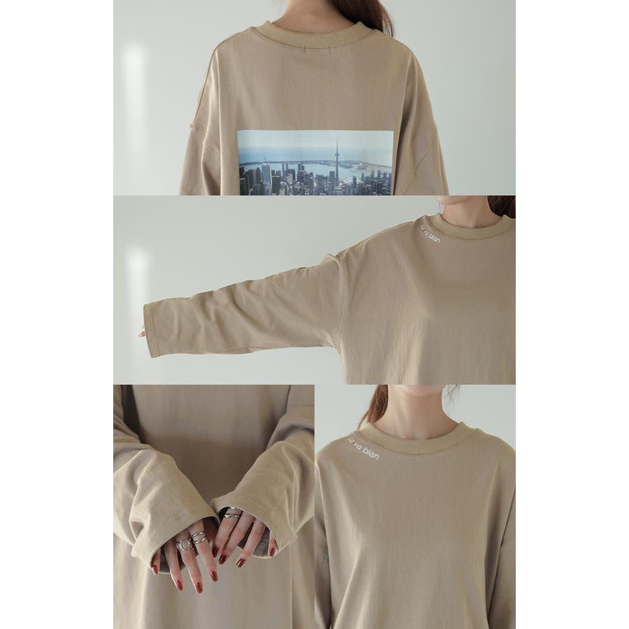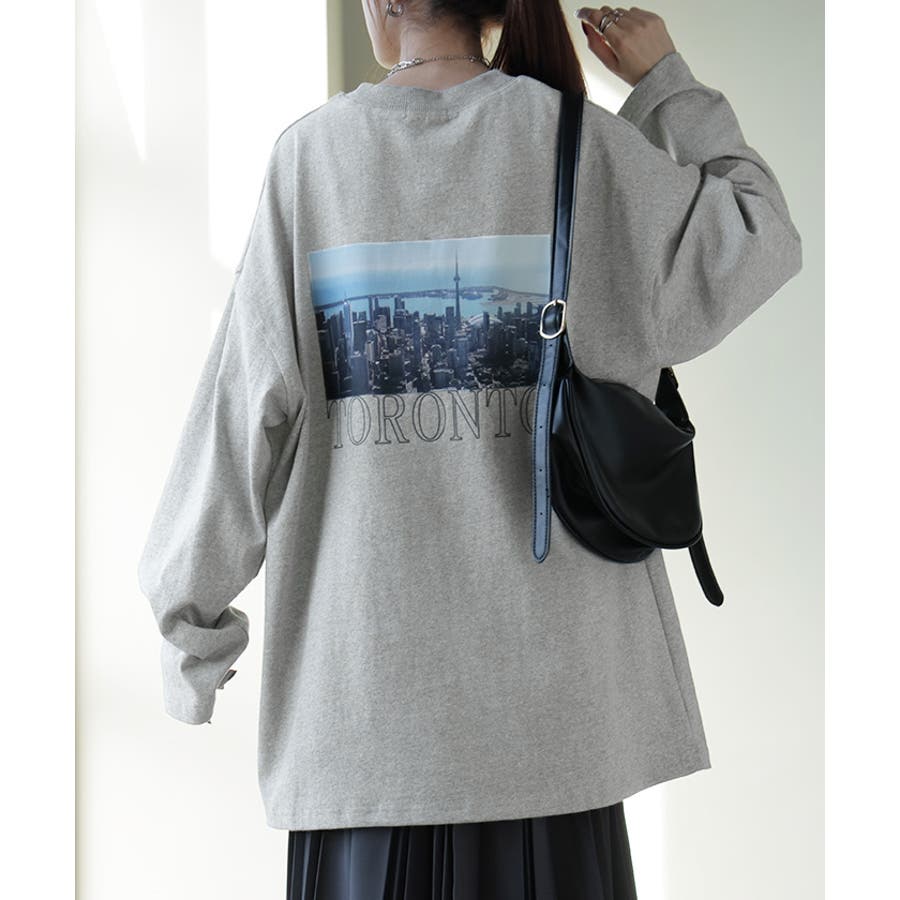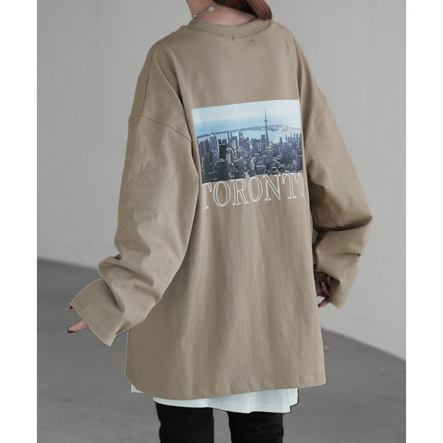 大人がカジュアルに着られるバックプリントが目を惹くモックネックロンTです。