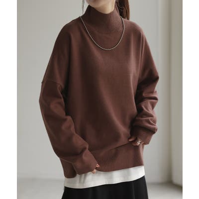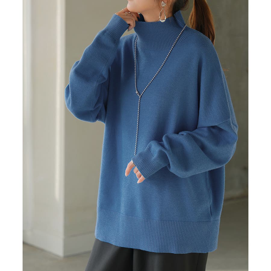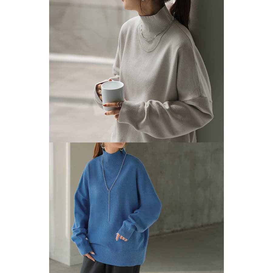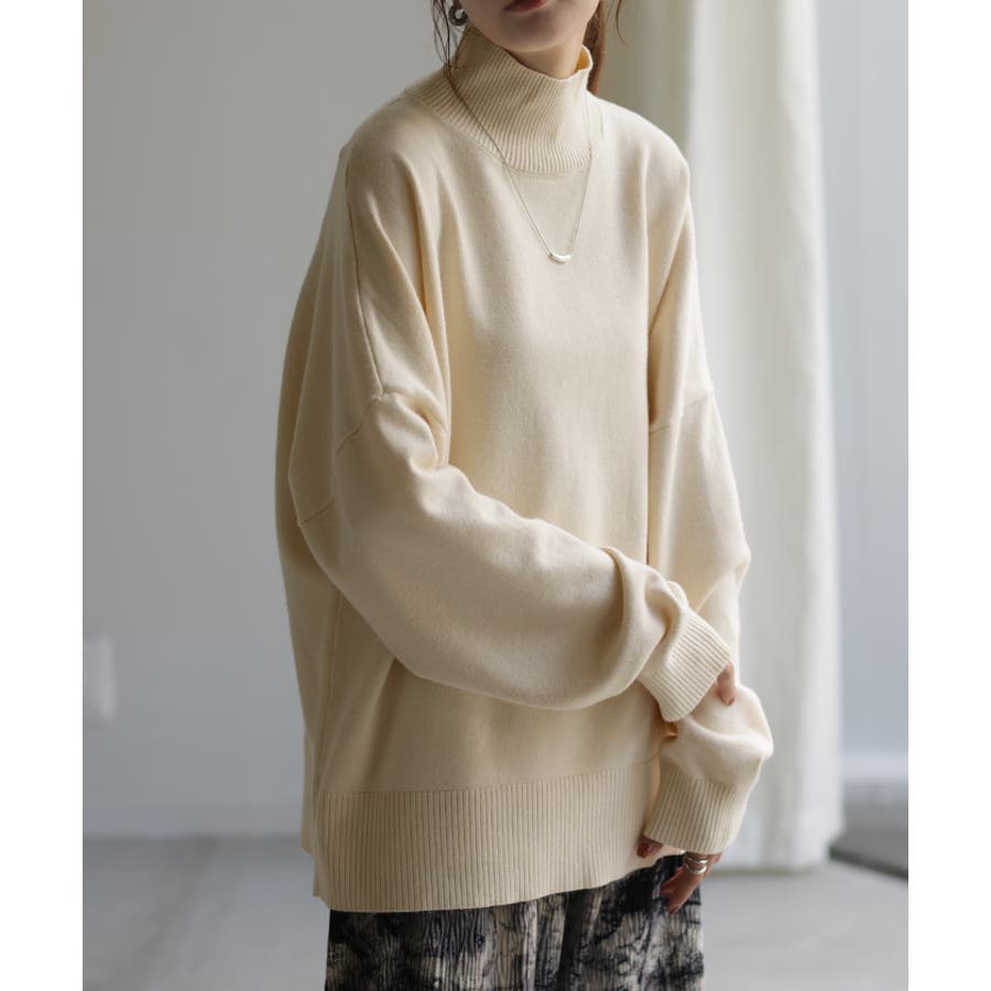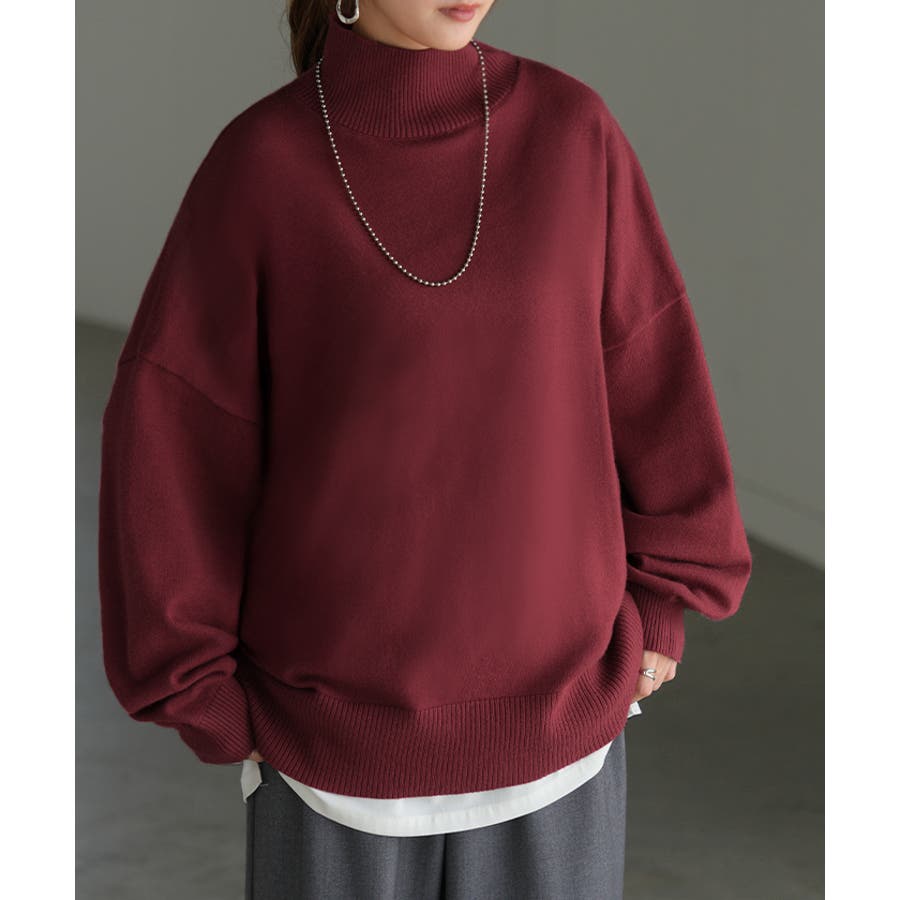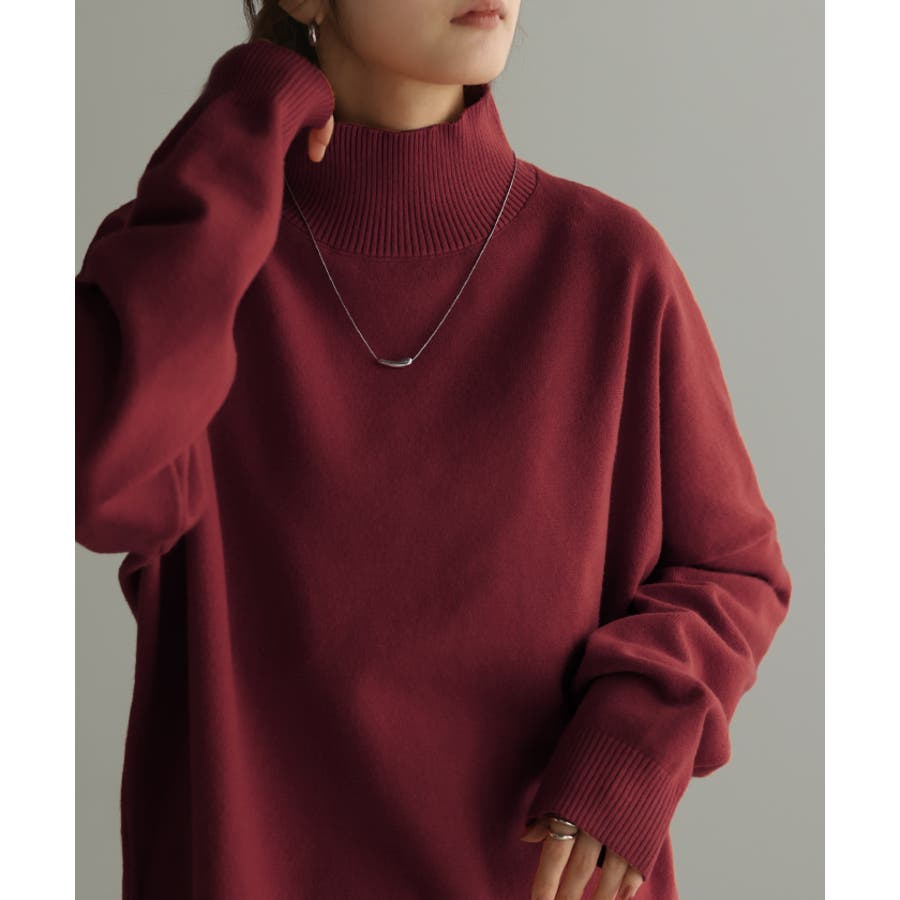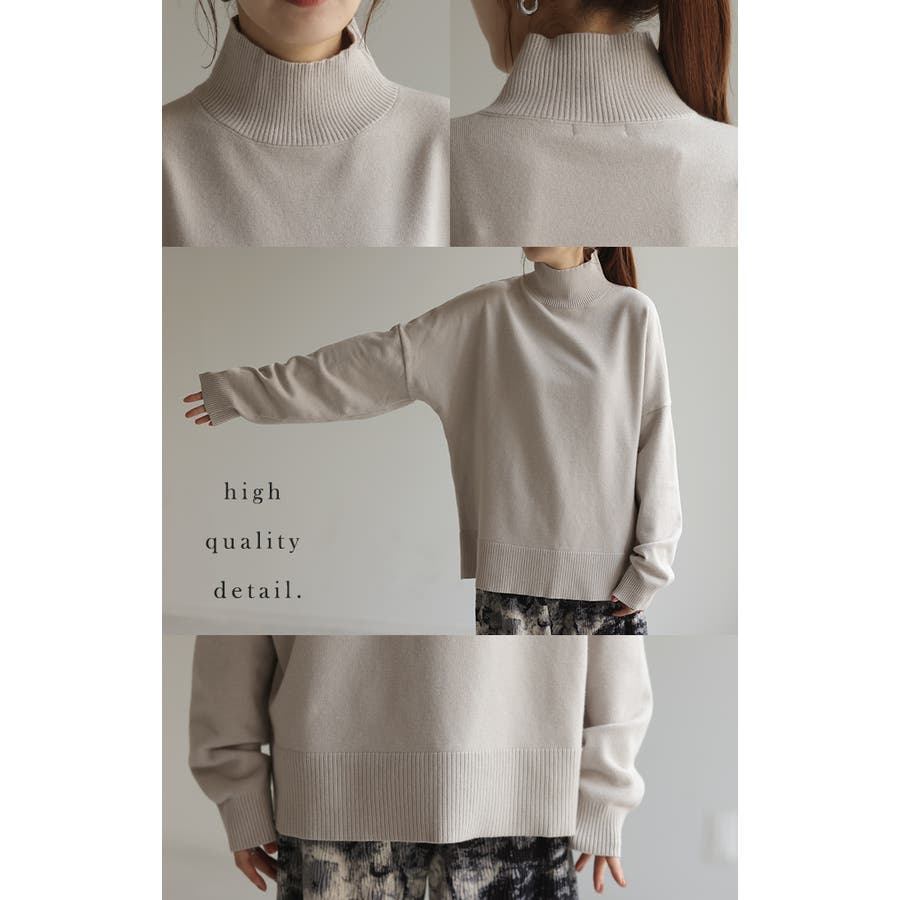 ハイネックが上品な大人顔を演出するニットトップスです。