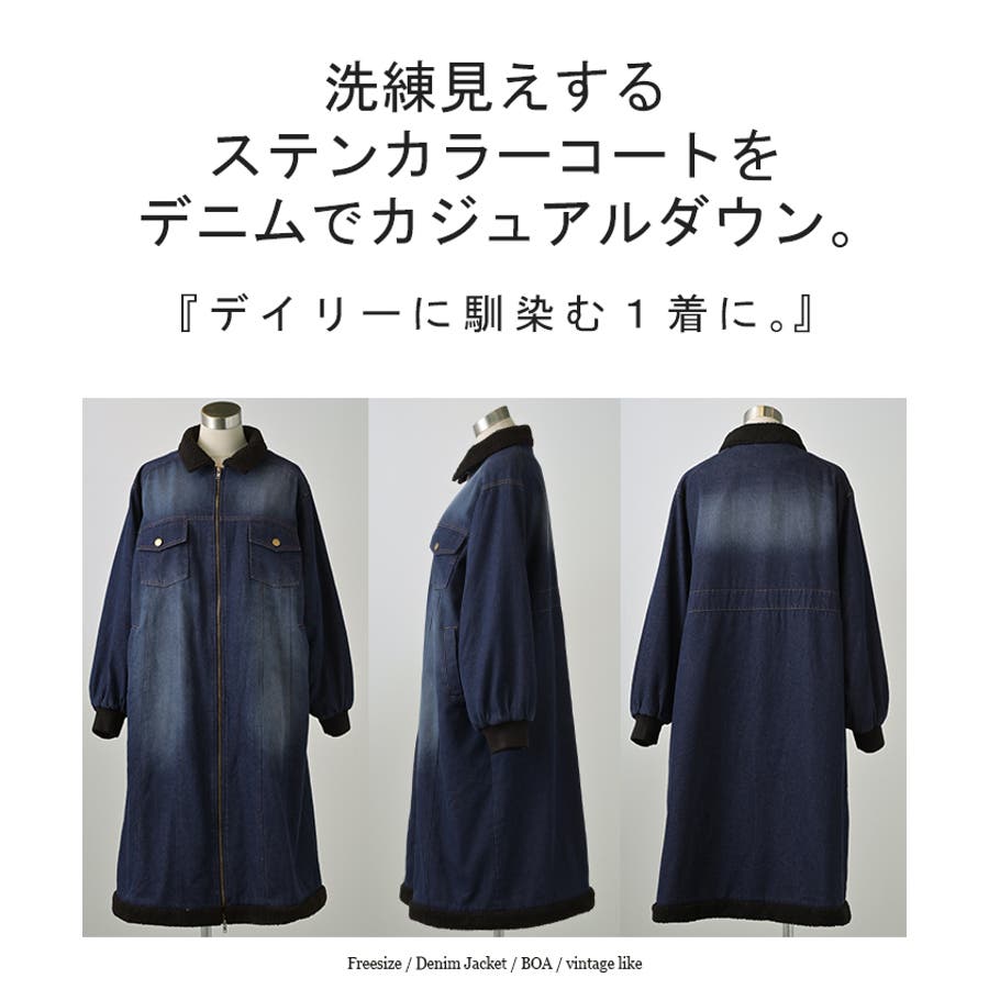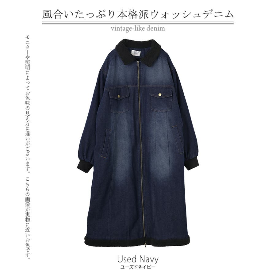 ヴィンテージ感の雰囲気ある裏ボア使いのロングデニムコートです。