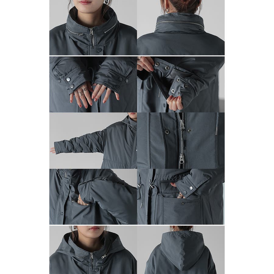 スタンドネックと収納可能なフード付きでユーティリティー性抜群の中綿コートです。