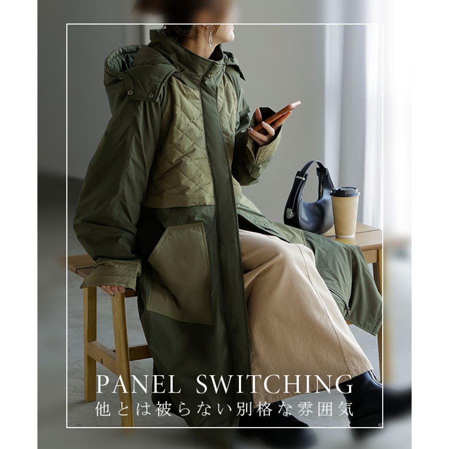 別布との切替デザインとロング丈のバランスで羽織るだけでこなれた印象◎。