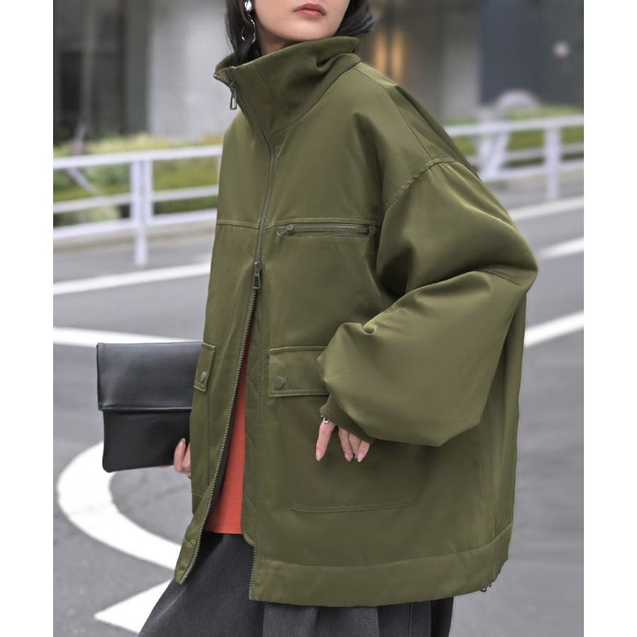 ゆったりシルエットのスタンドカラーのミリタリーアウターです。