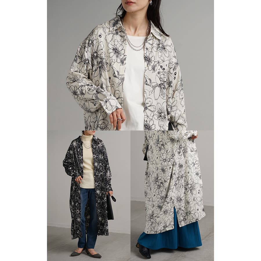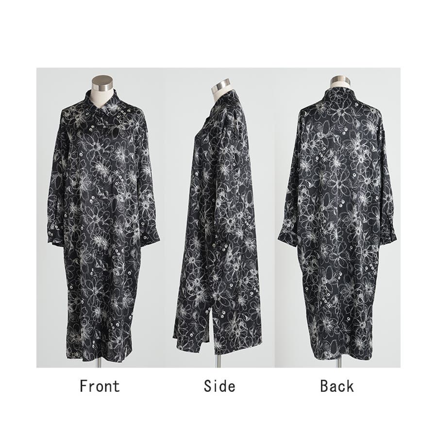 プリントの花柄が大人かわいい印象のシャツワンピースです。