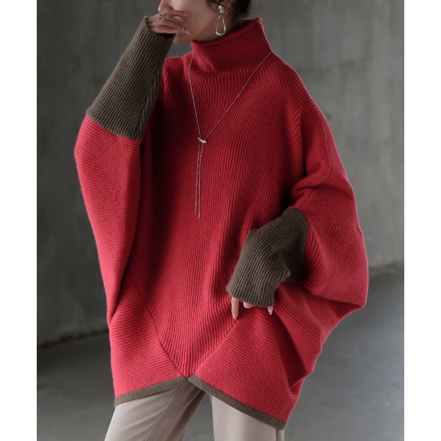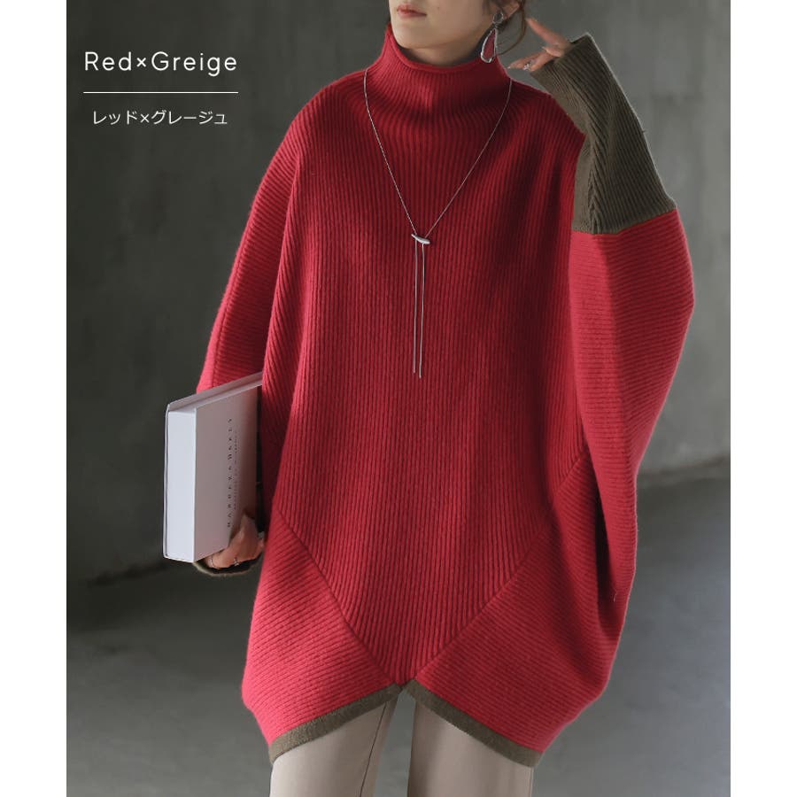 レッド×グレージュ(ハイネック)