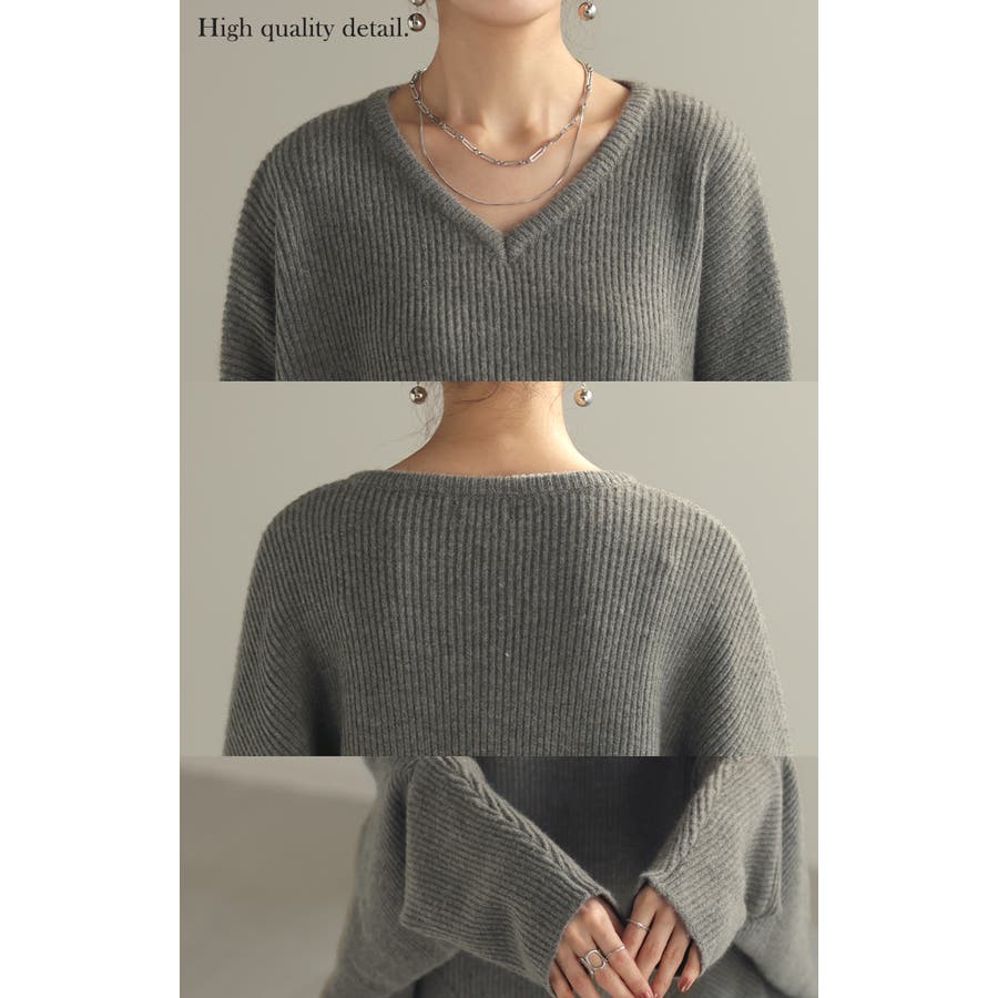 デコルテを綺麗に見せる深すぎないVネックデザインで顔周りもスッキリ◎。
