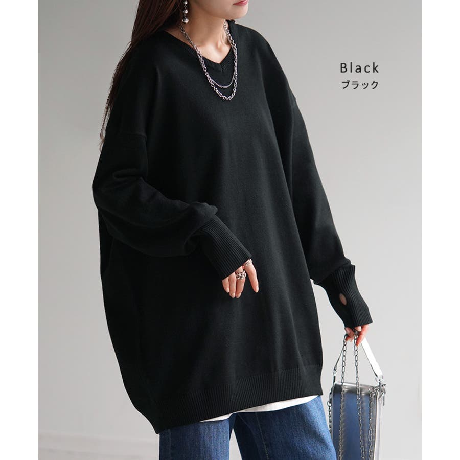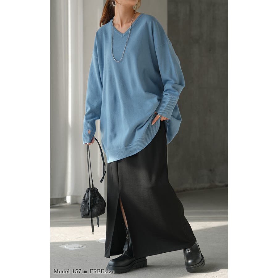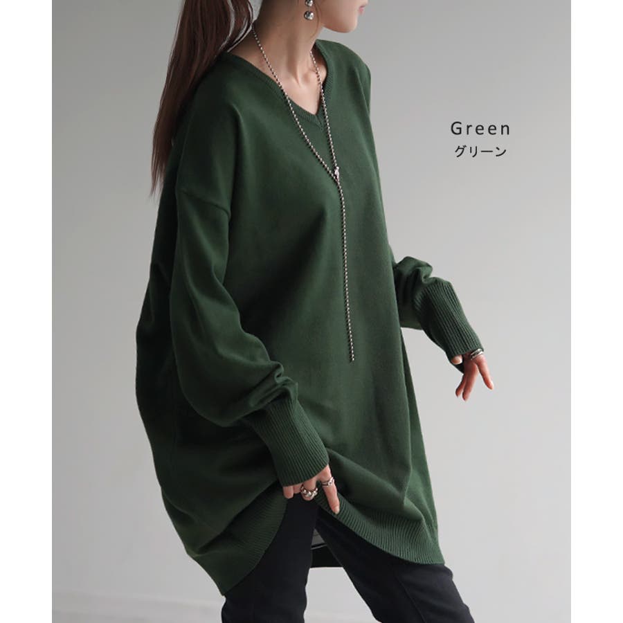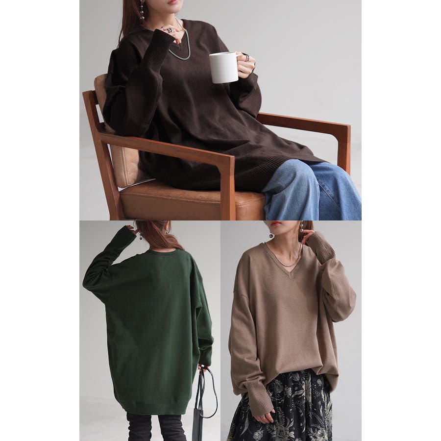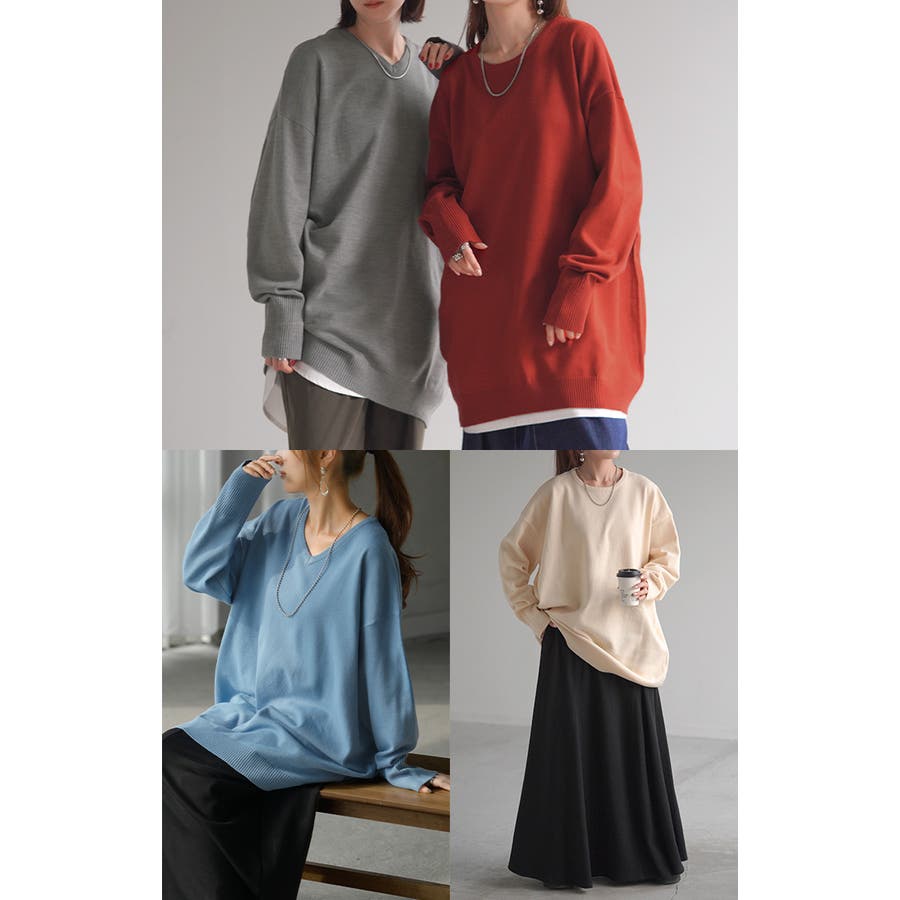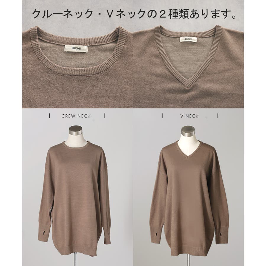 クルーネック&Vネックから選べるチュニック丈のニットです。
