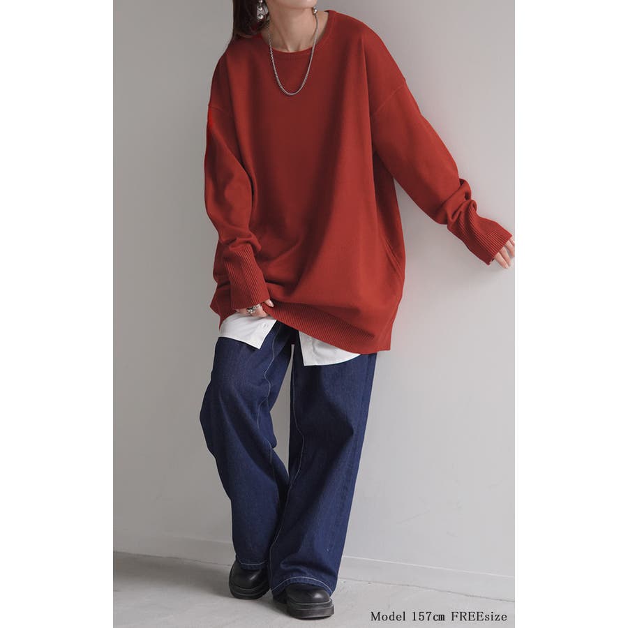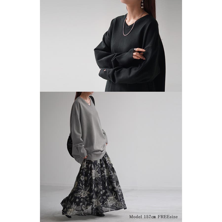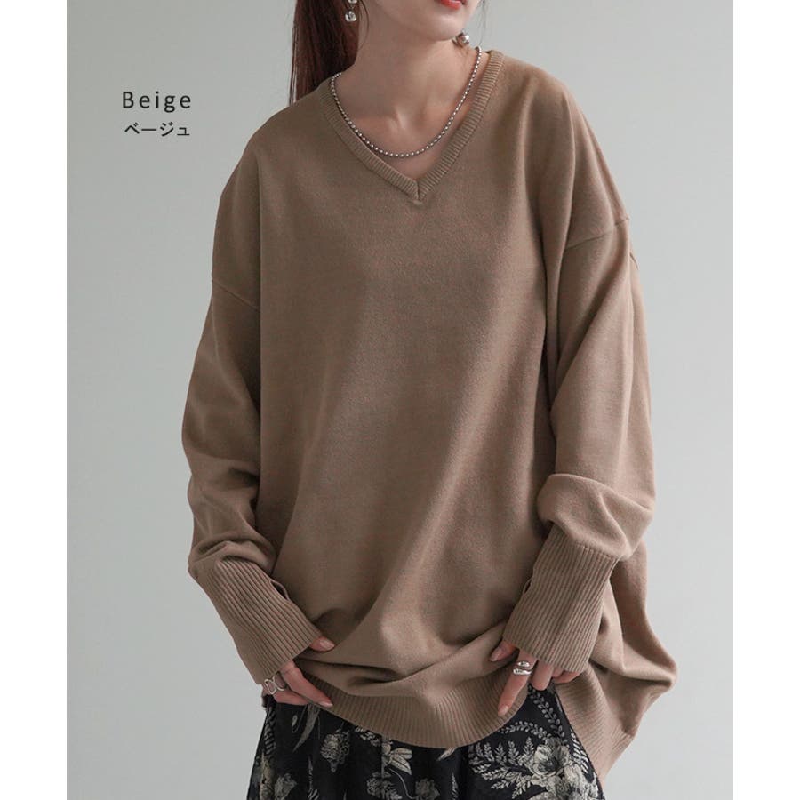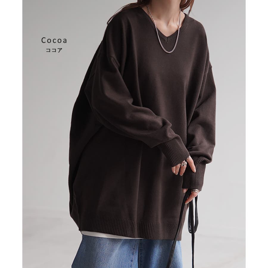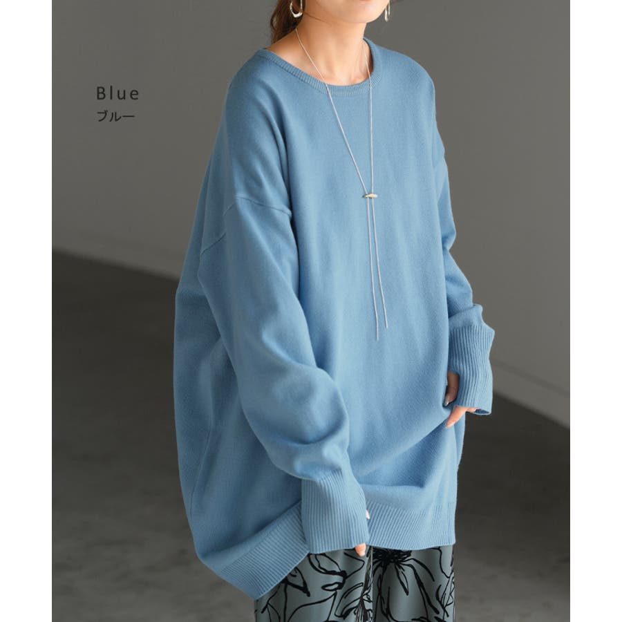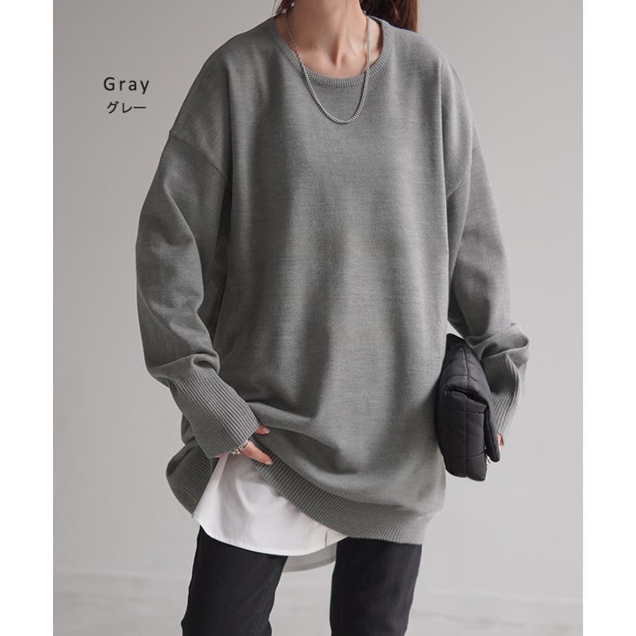 クルーネック&Vネックから選べるチュニック丈のニットです。