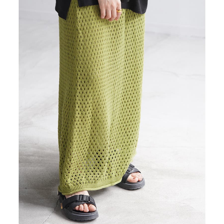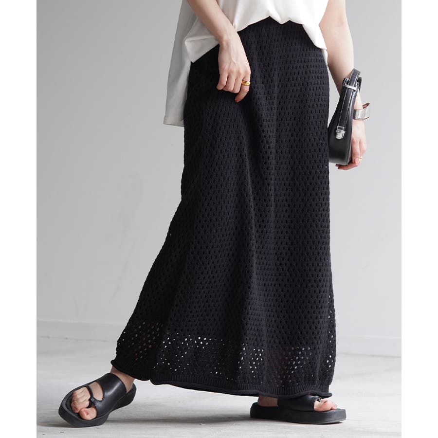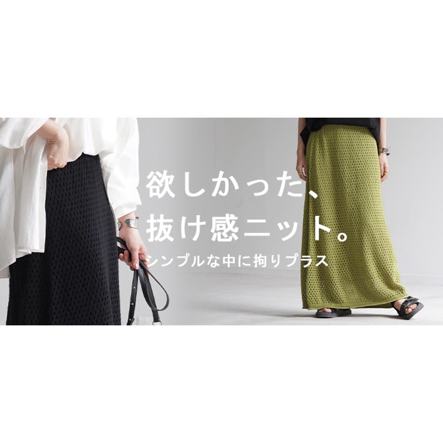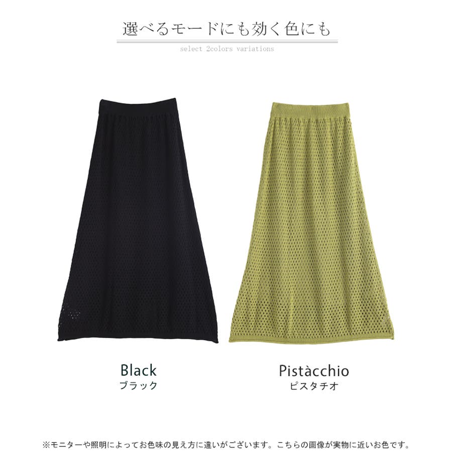 透かし編みニット地で仕上げ、シアー感が魅力のニットスカートです。