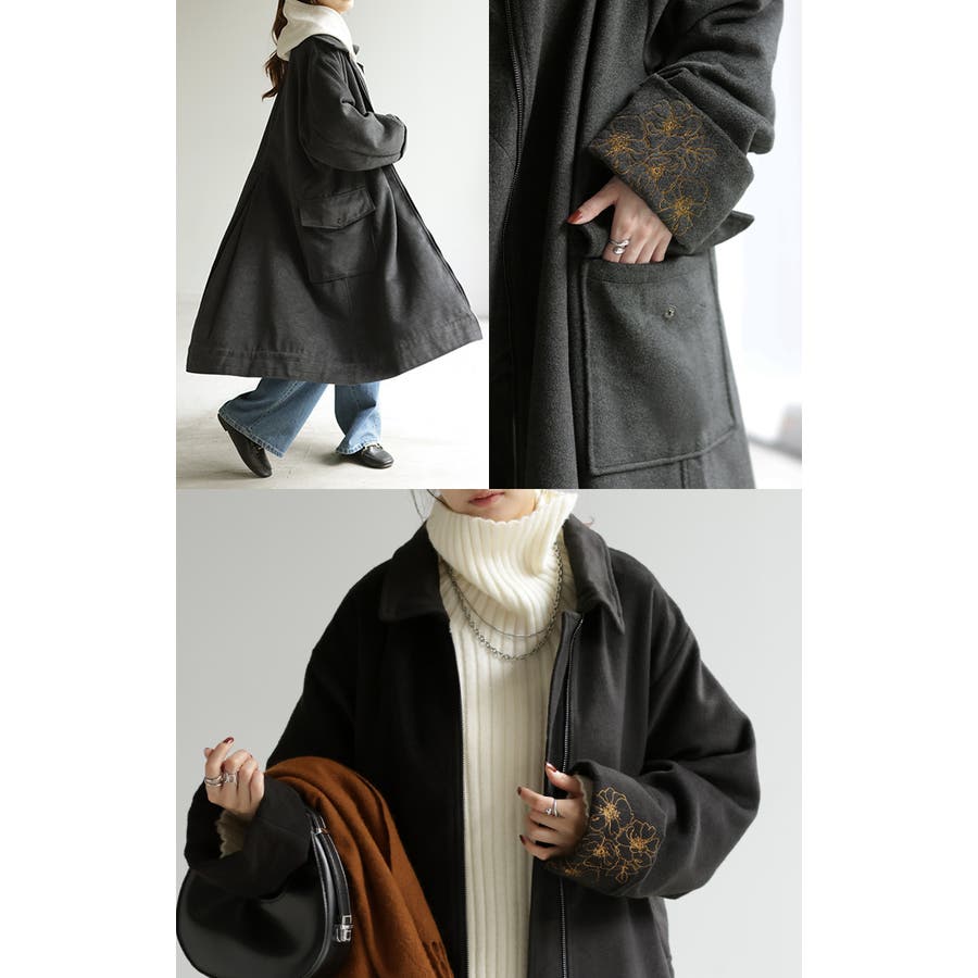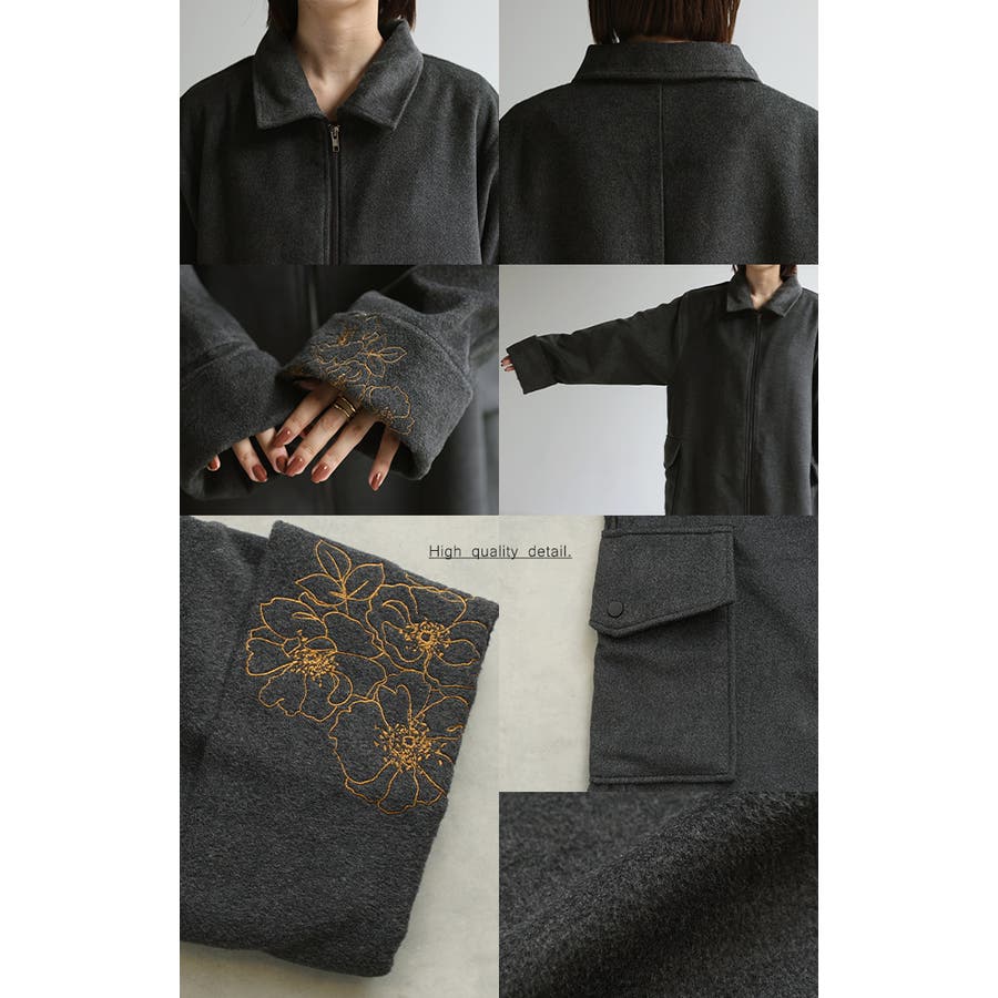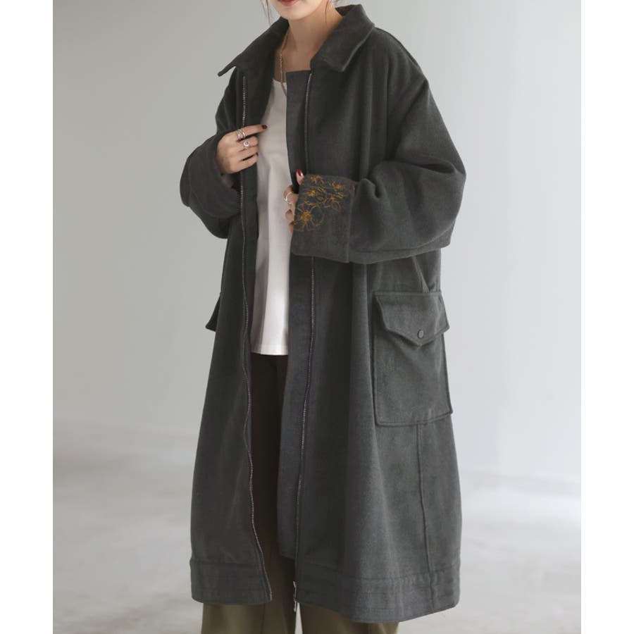 袖口に施された刺繍デザインも特徴的で大人可愛いスタイリングに◎。