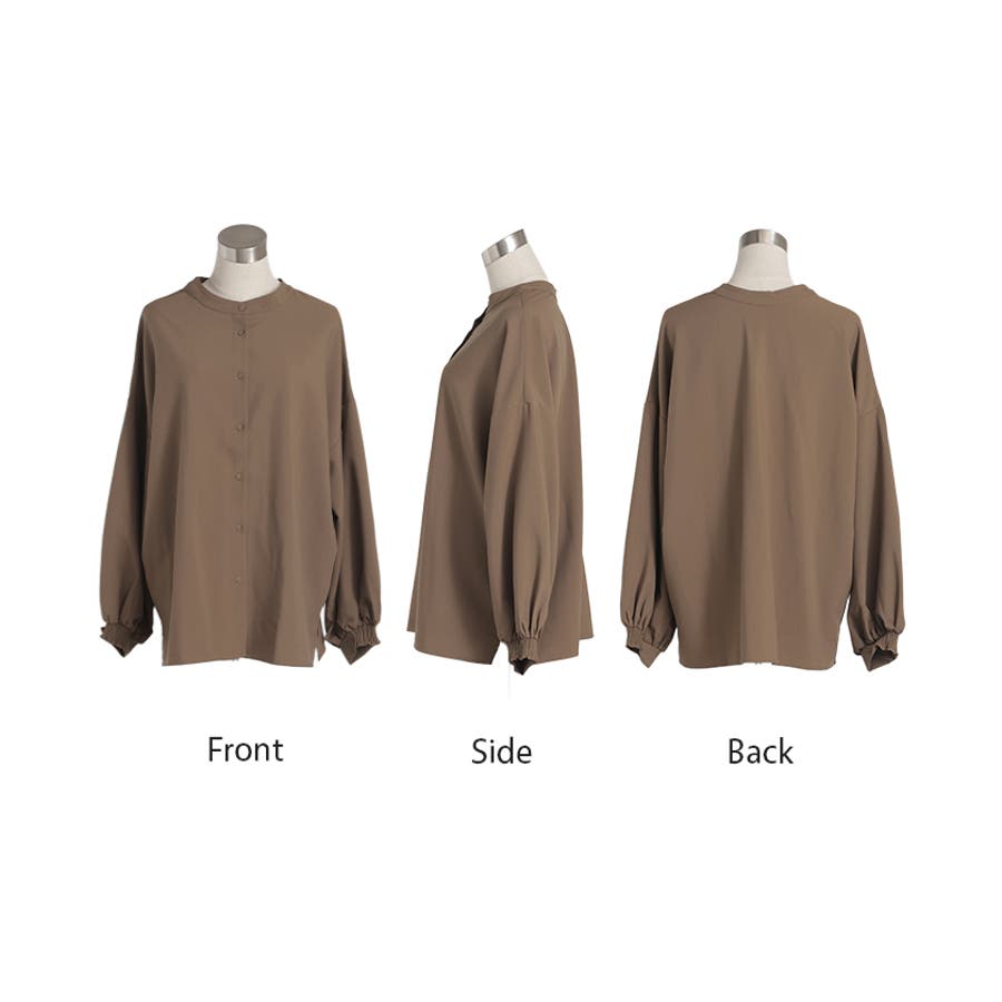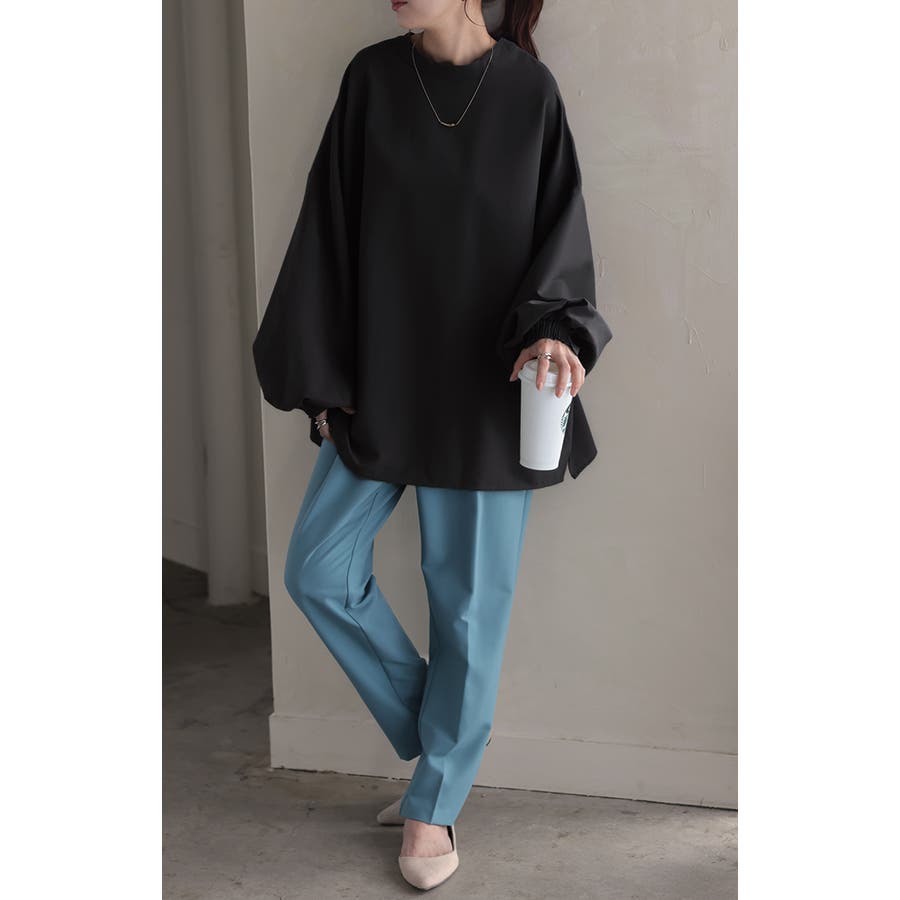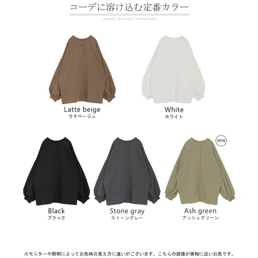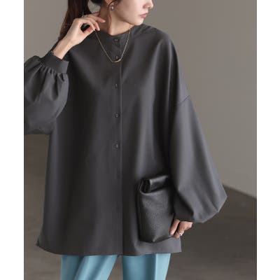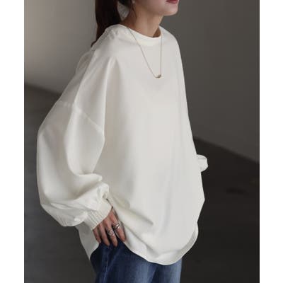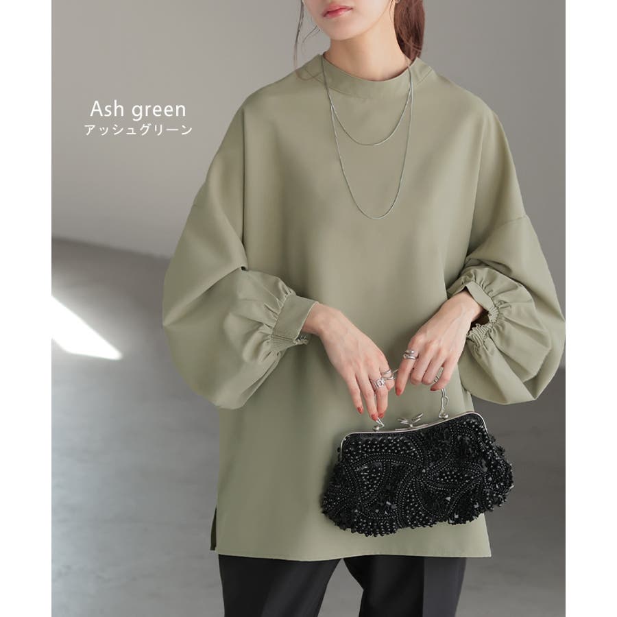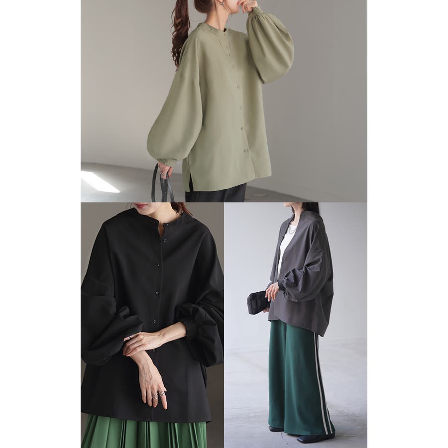 シャーリングの入ったボリューム袖が大人可愛いブラウスです。