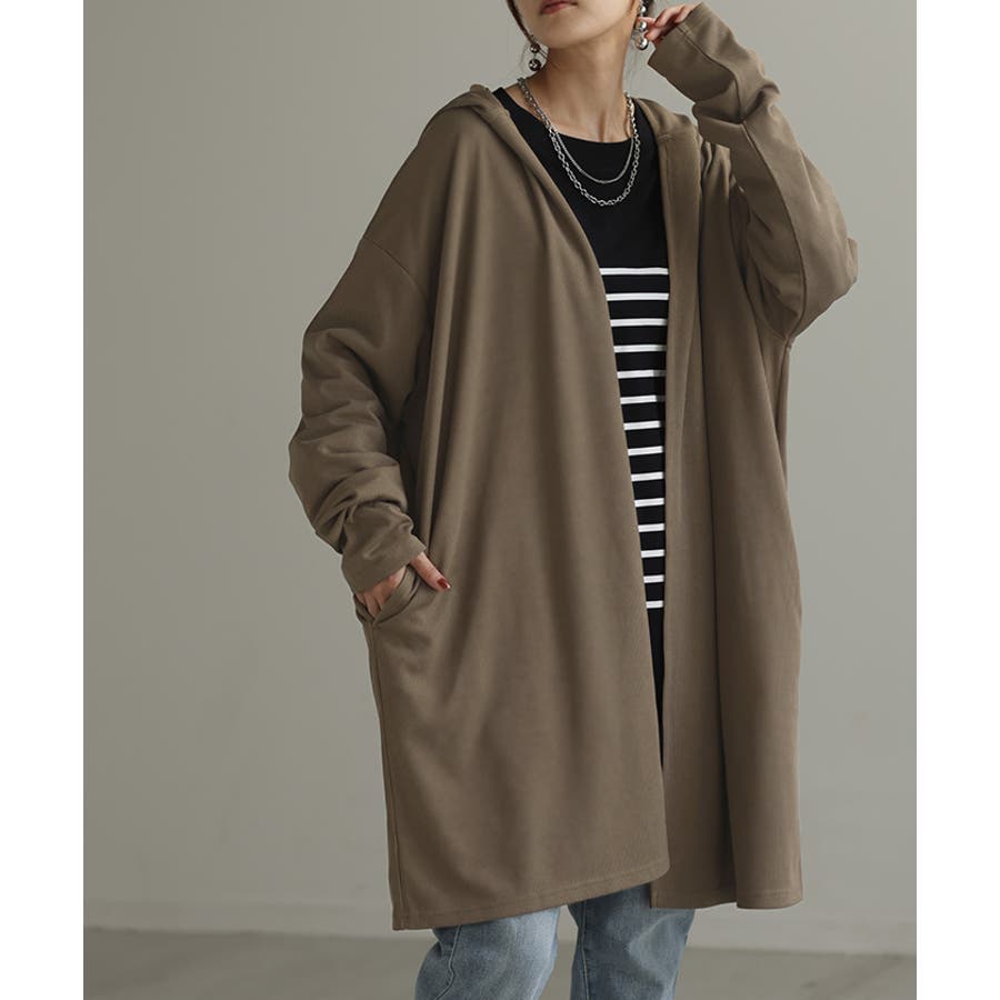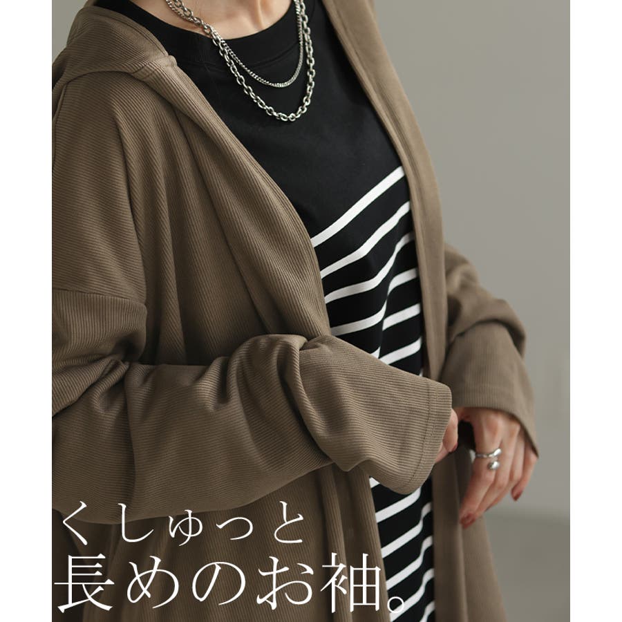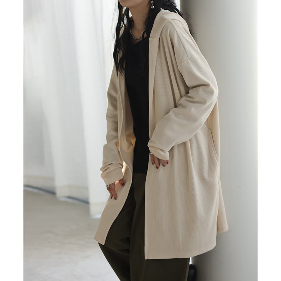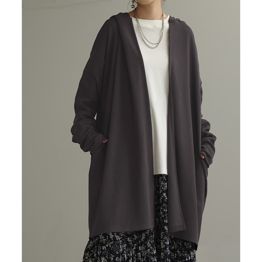 ナチュラル&モードな雰囲気漂うトッパーフードカーディガンです。
