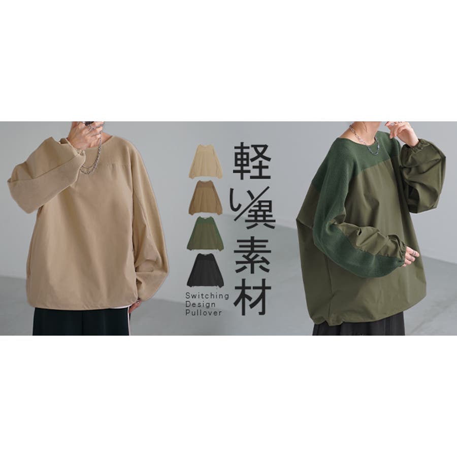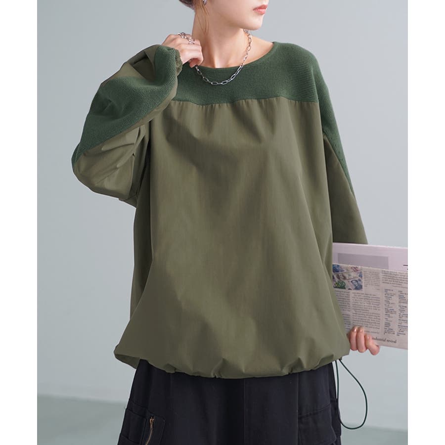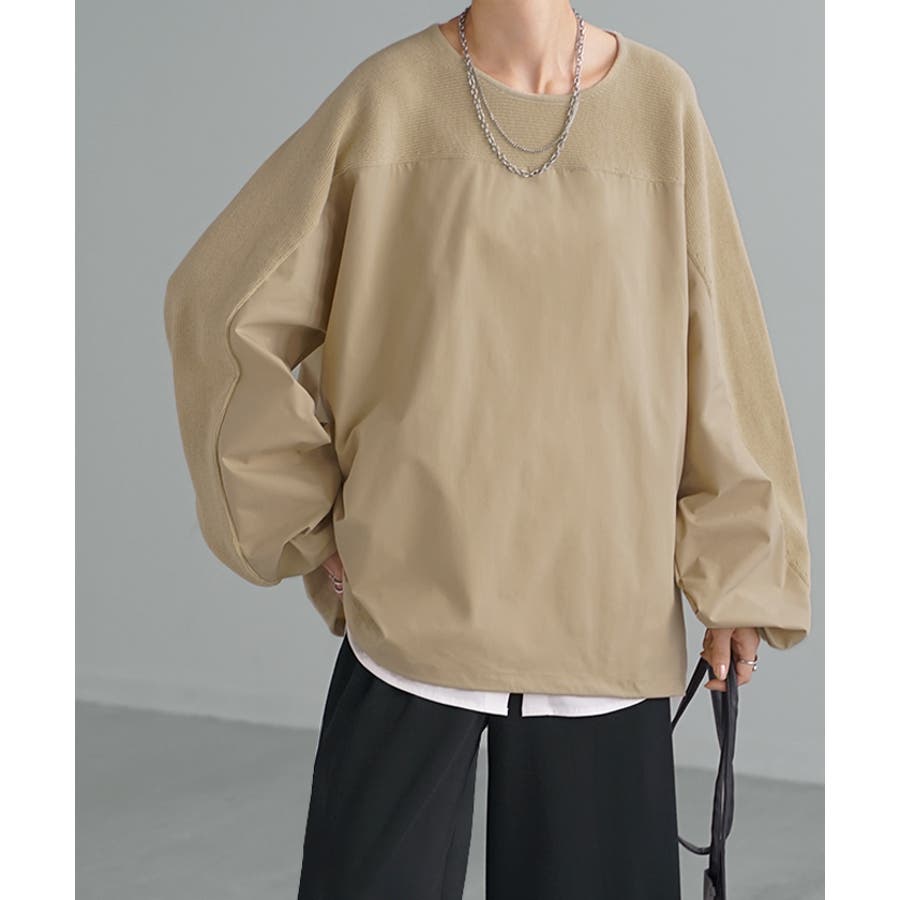 布帛×ニットの異素材デザインが新鮮なプルオーバートップスです。