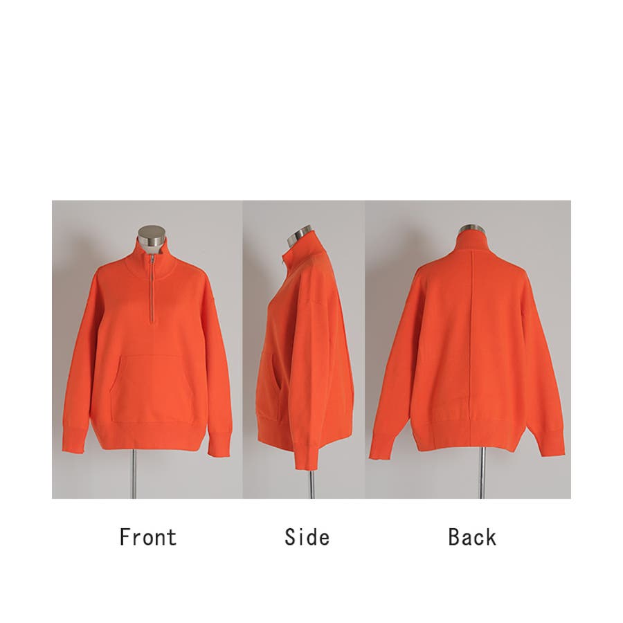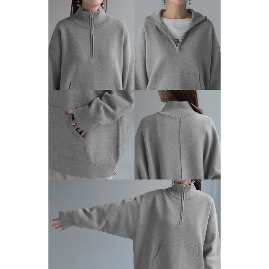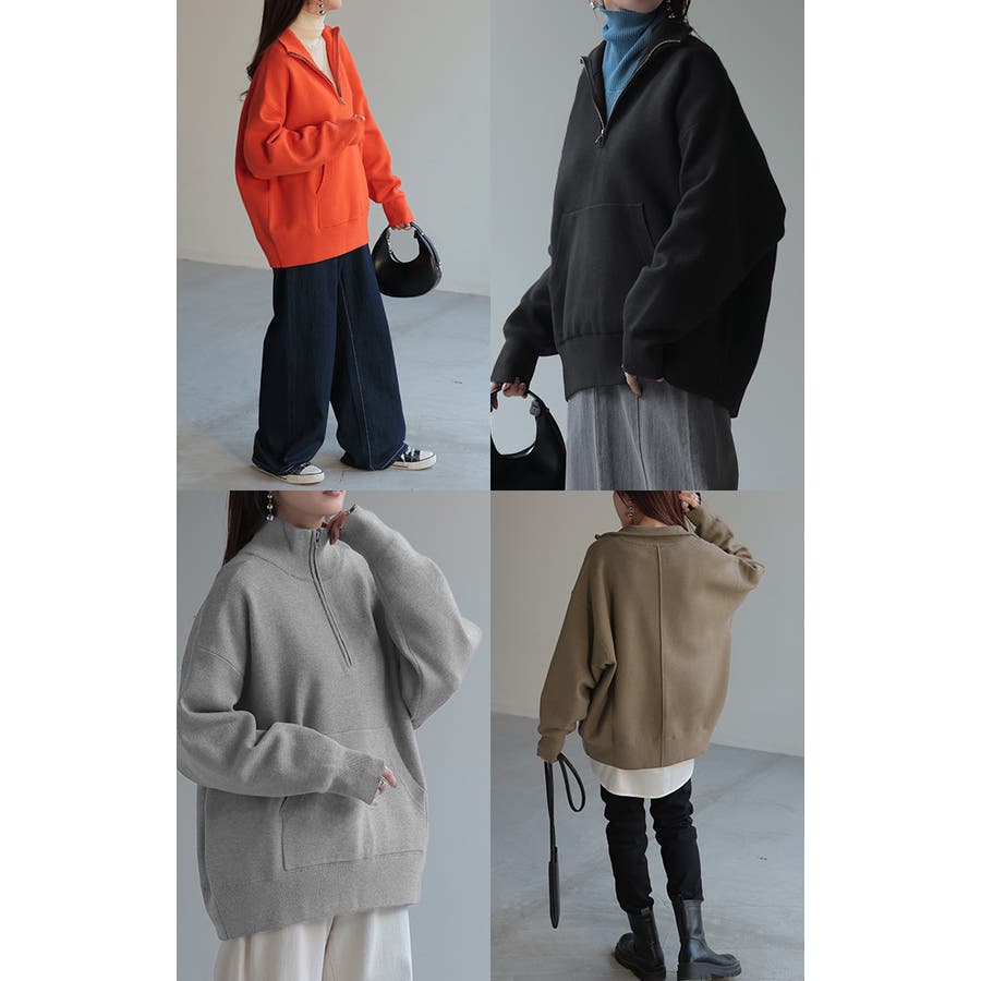 トレンドのハーフジップがアクセントになったニットトップスです。