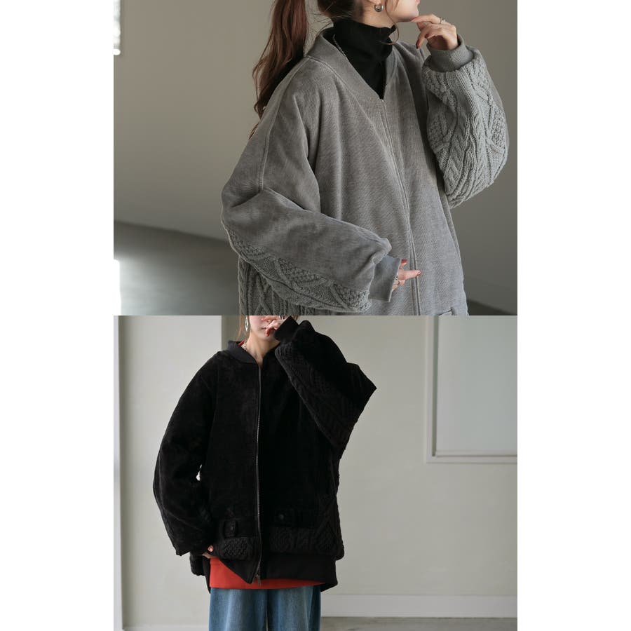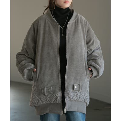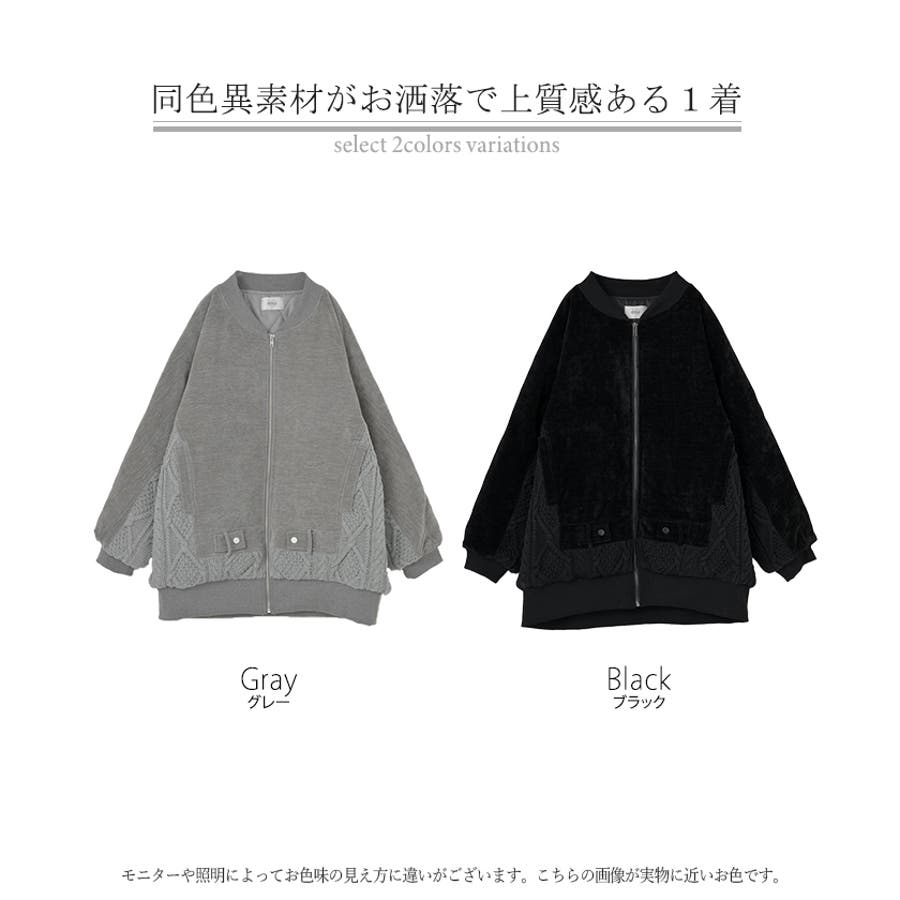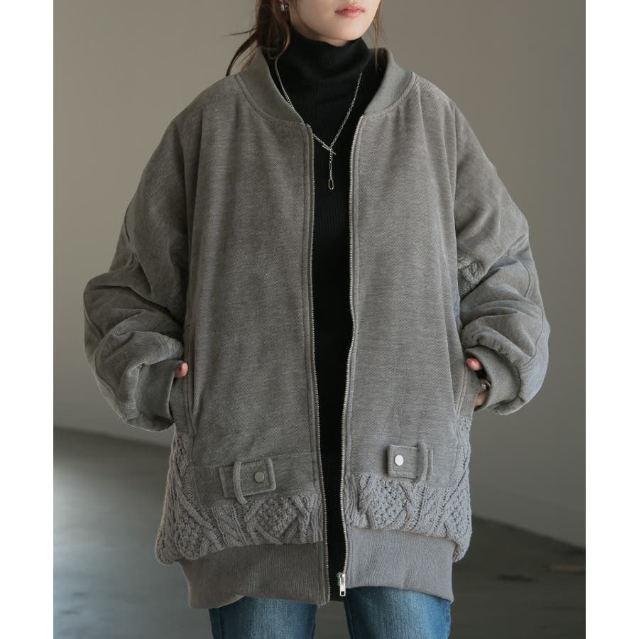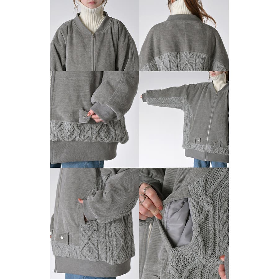 メンズライクになりがちなブルゾンがニット切り替えデザインでやわらかな印象に◎。