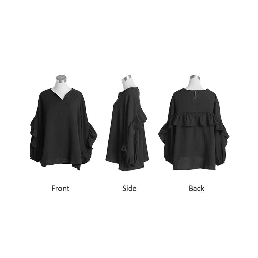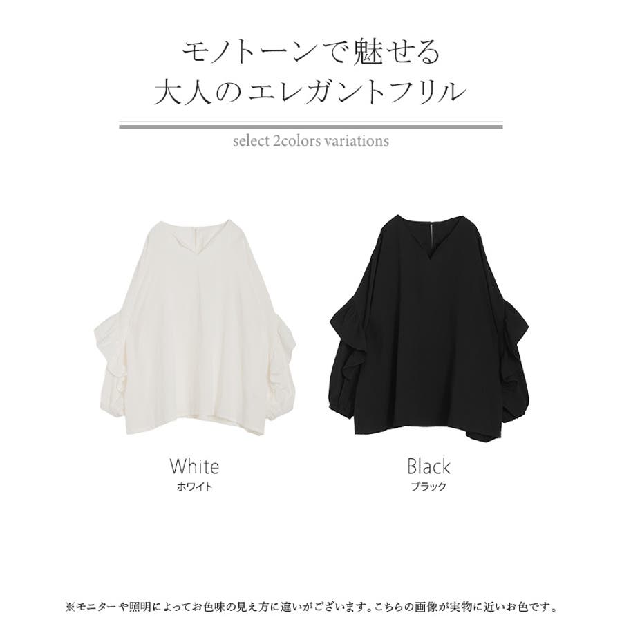 1枚でどんなスタイルにも華やかに決まるフリルデザインブラウスです。