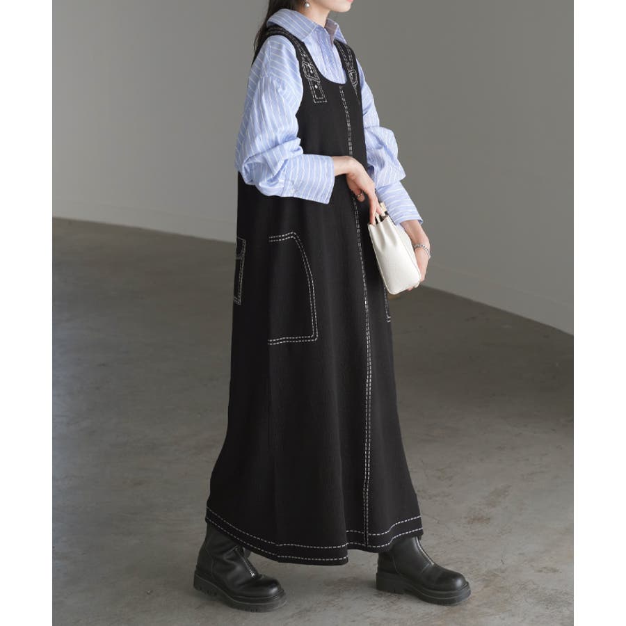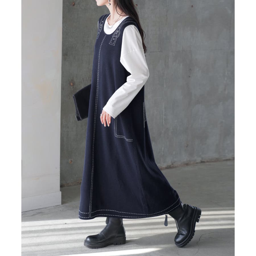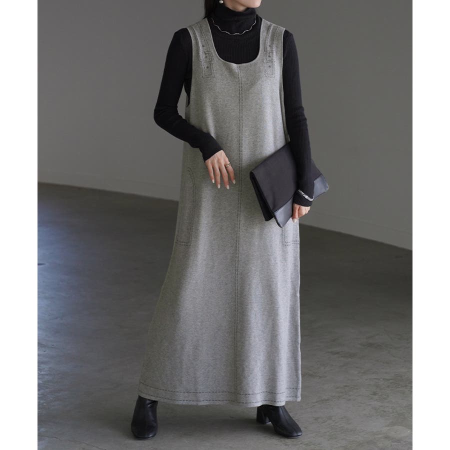 ステッチ柄を編み込んだデザインのニットワンピースです。