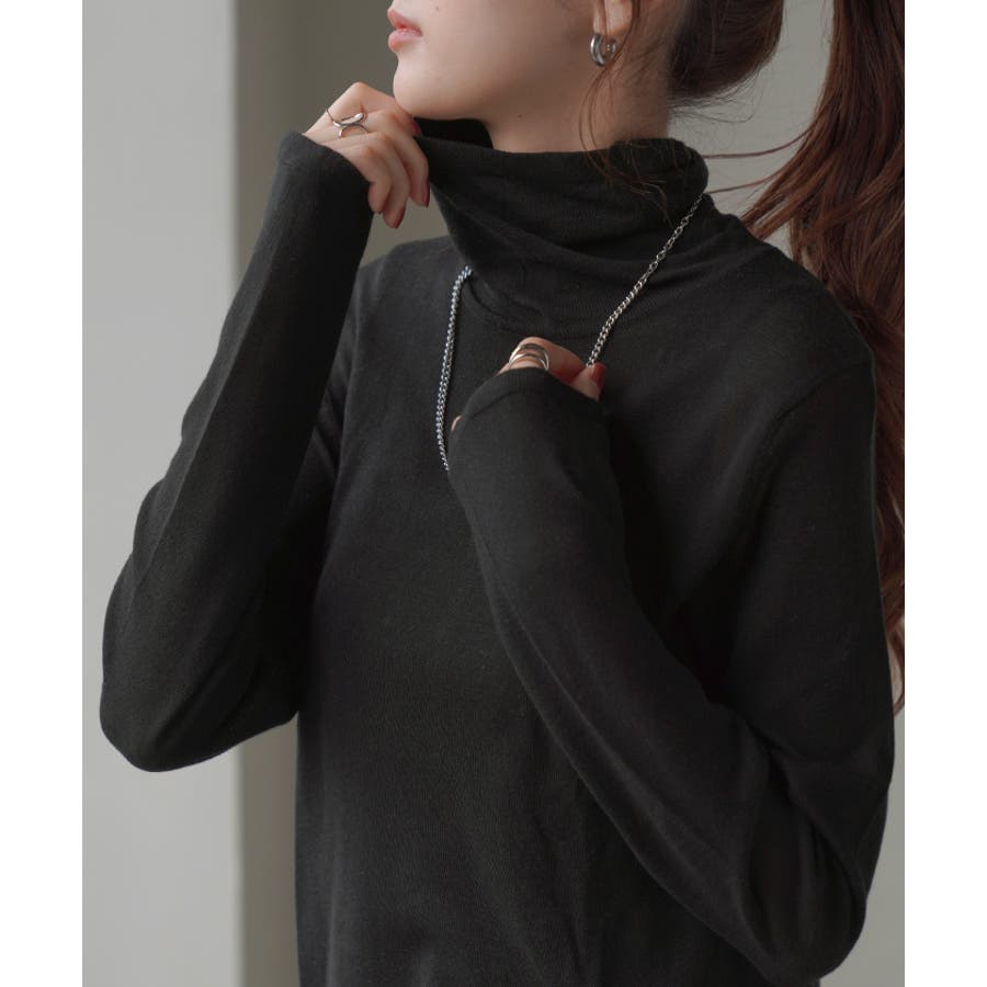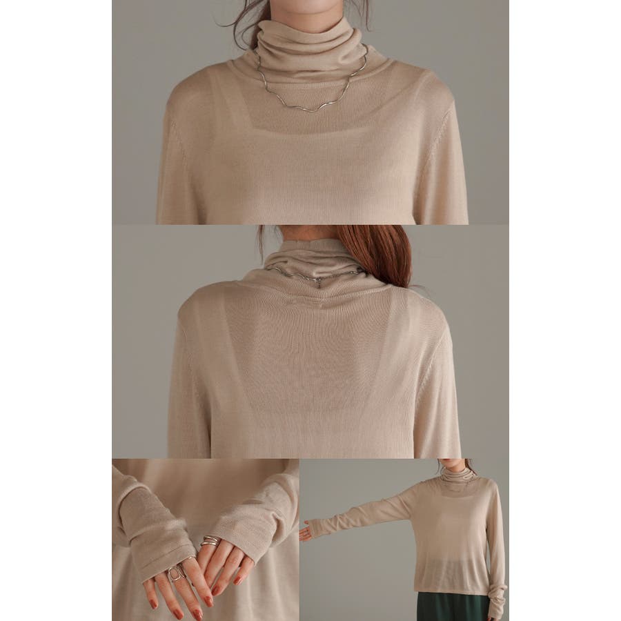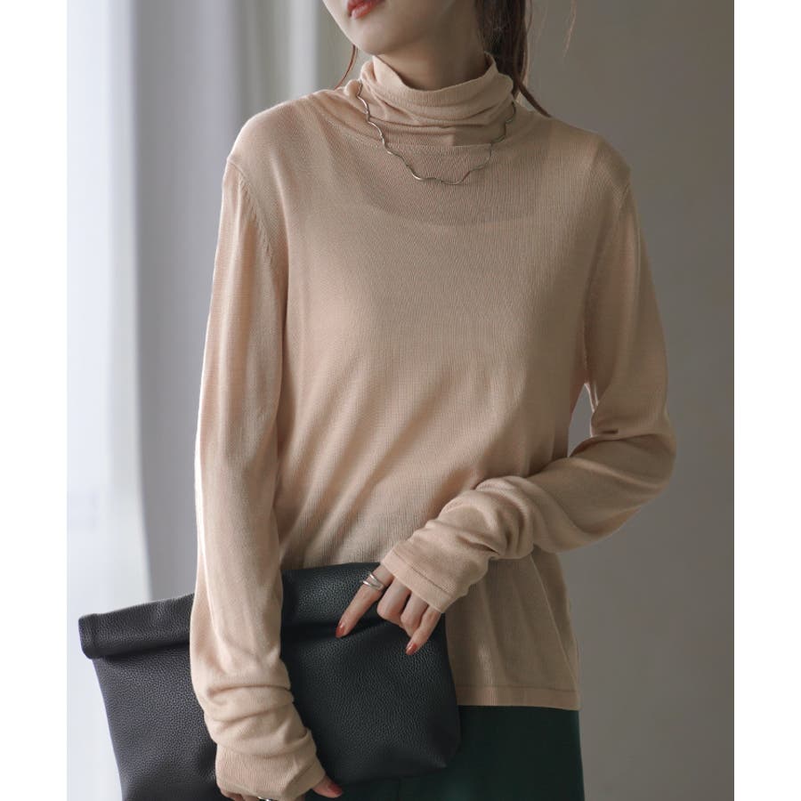 絶妙な透け感がポイントのシアーハイネックトップスです。
