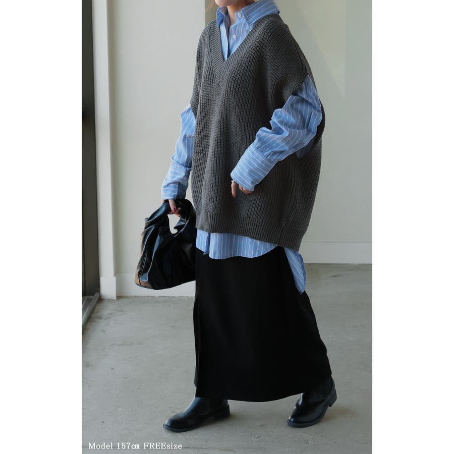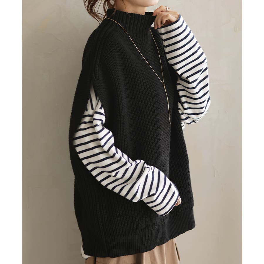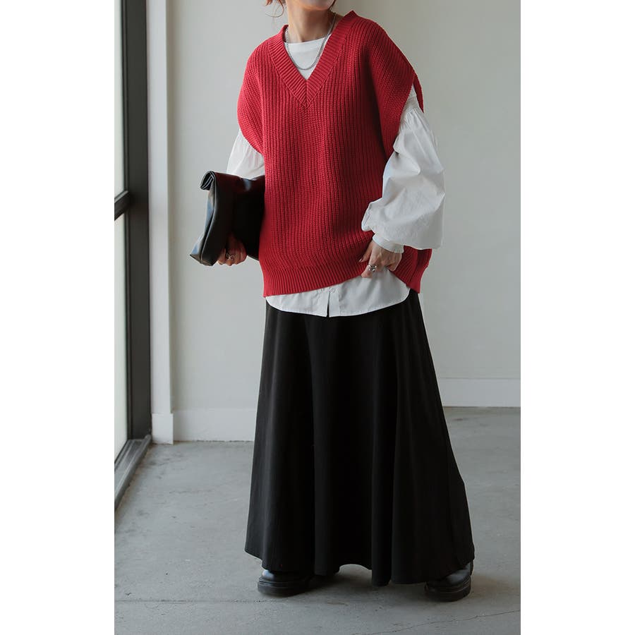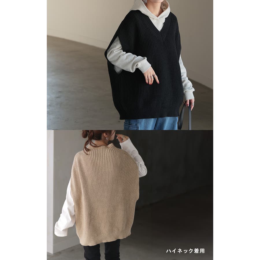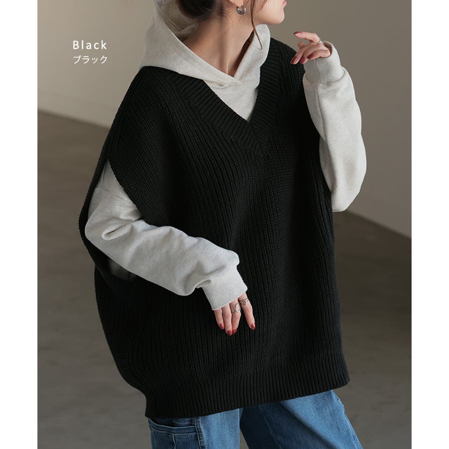 お好きなインナーとレイヤードするだけでスタイリングが完成するニットベストです。