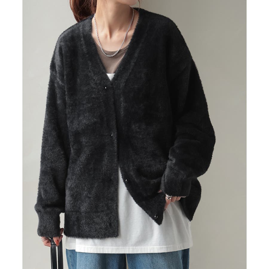 カーディガン シャギーニット パール