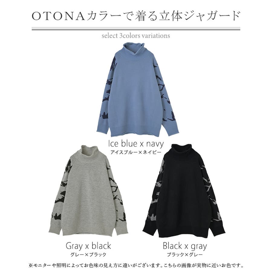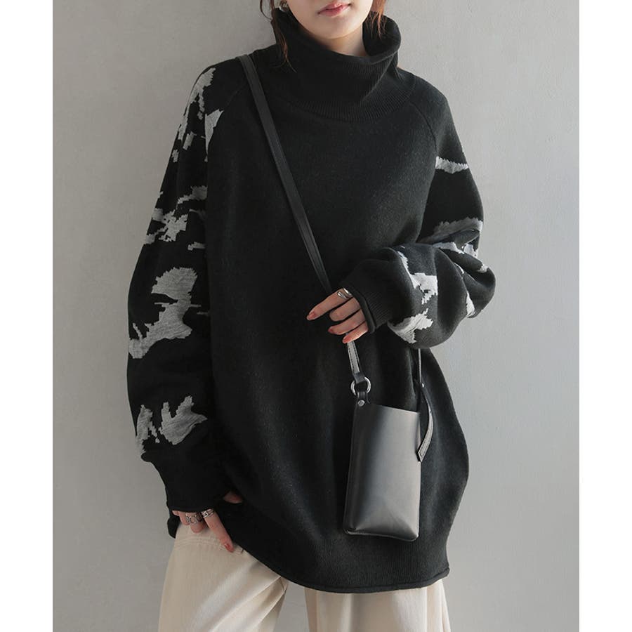 リラクシーな雰囲気あるラグランデザインのハイネックニットです。
