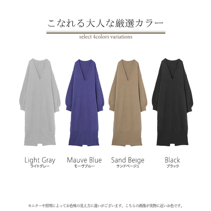 深めのVネックにパフスリーブがアクセントになったニットワンピースです。
