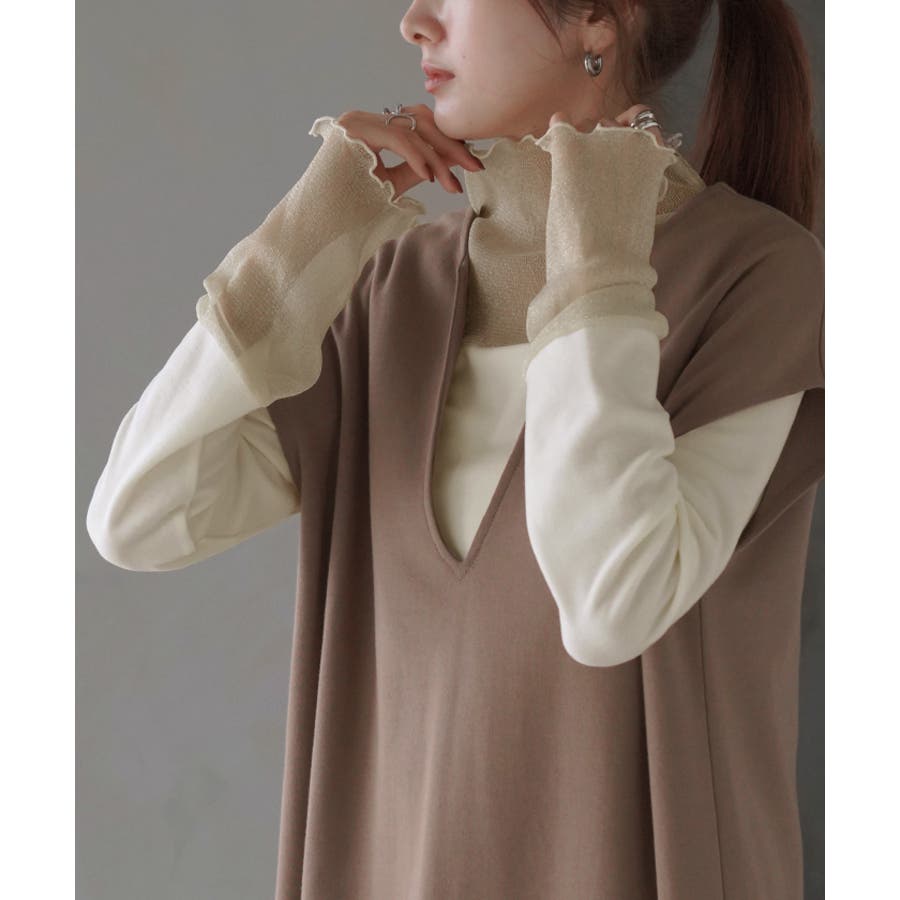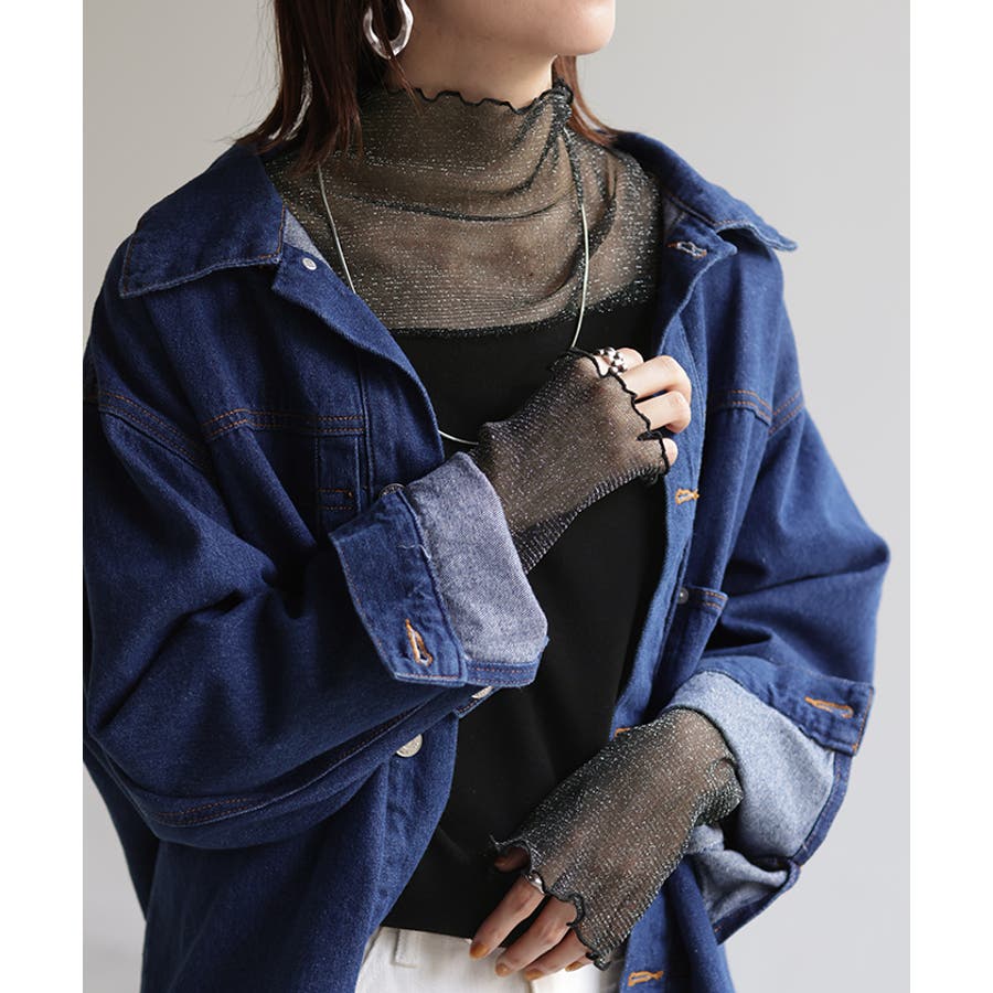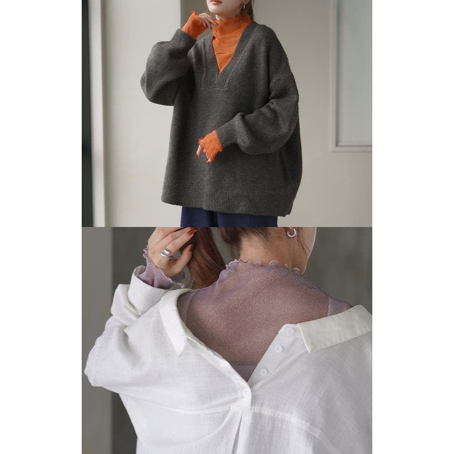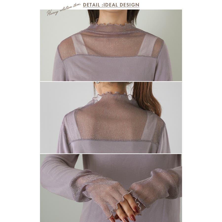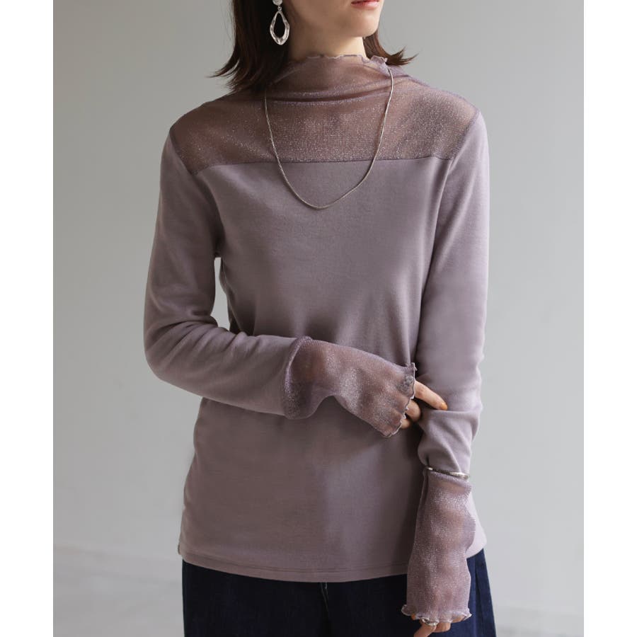 シアーな素材感が大人っぽい長袖のハイネックトップスです。