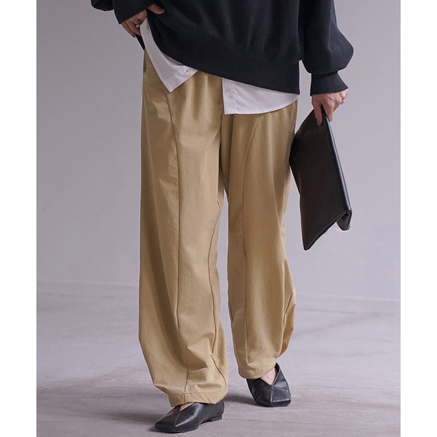 ゆったり×すっきりが叶うシンプルに映える裾タックパンツです。