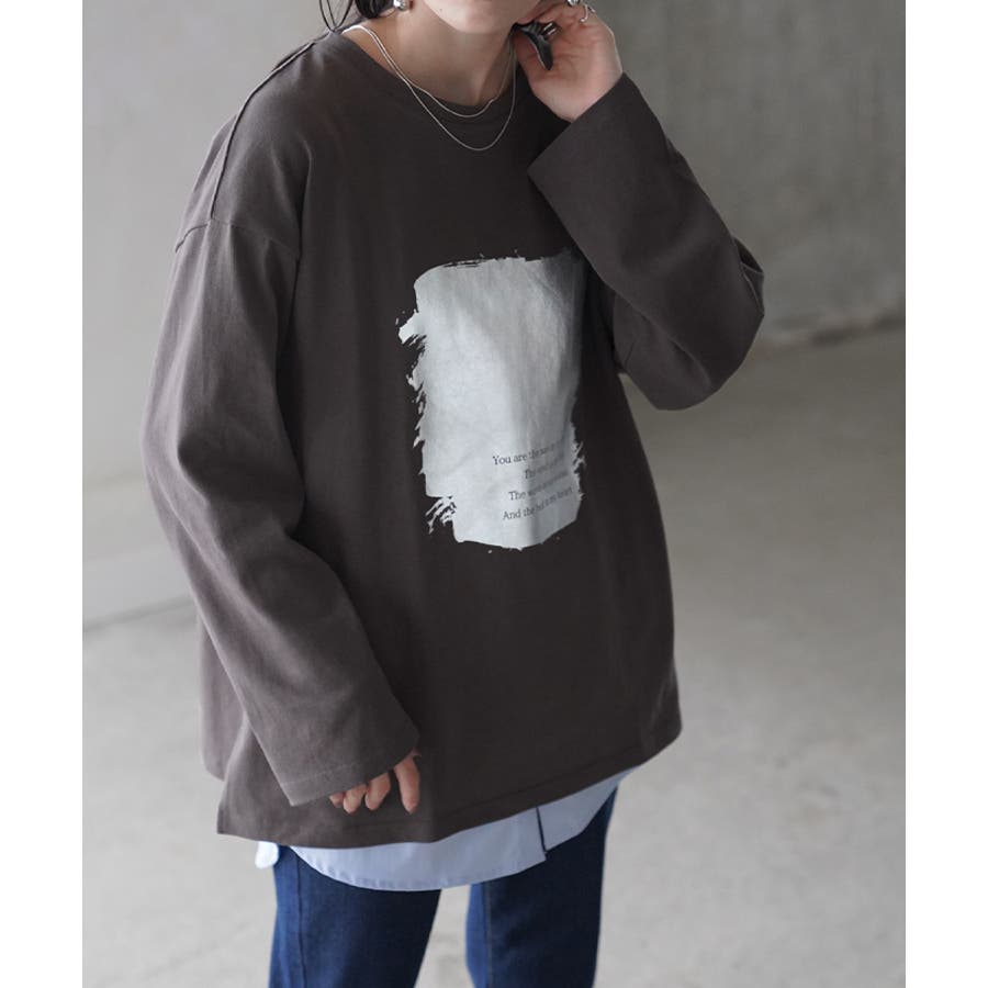 輝く箔プリントデザインが魅力的なモード感ある長袖カットソーです。