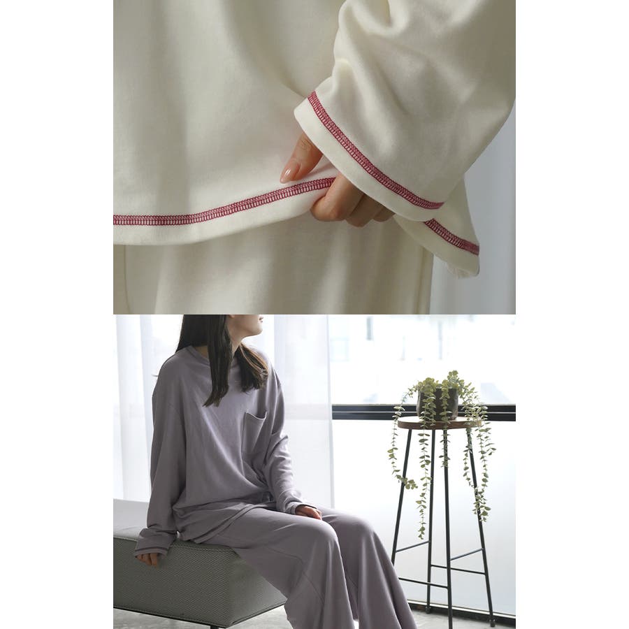 さりげなく施された配色ステッチがこなれ感あるルームウェアです。