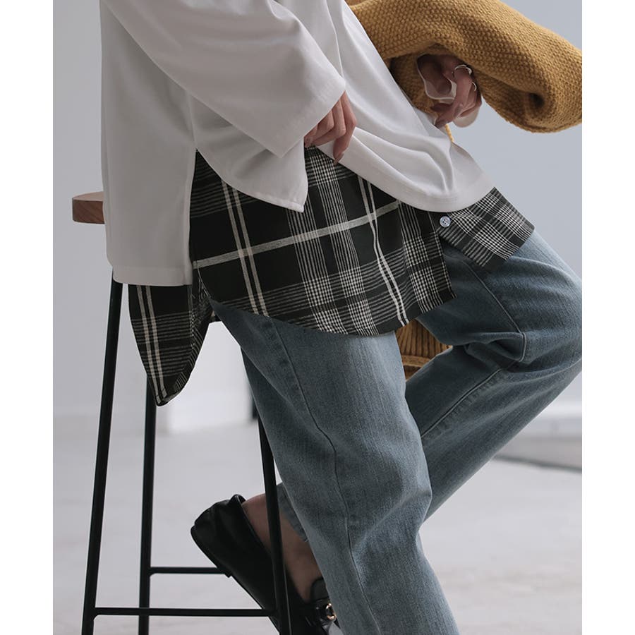 トップスの下に合わせればトレンドの裾レイヤード風に見える便利アイテム。
